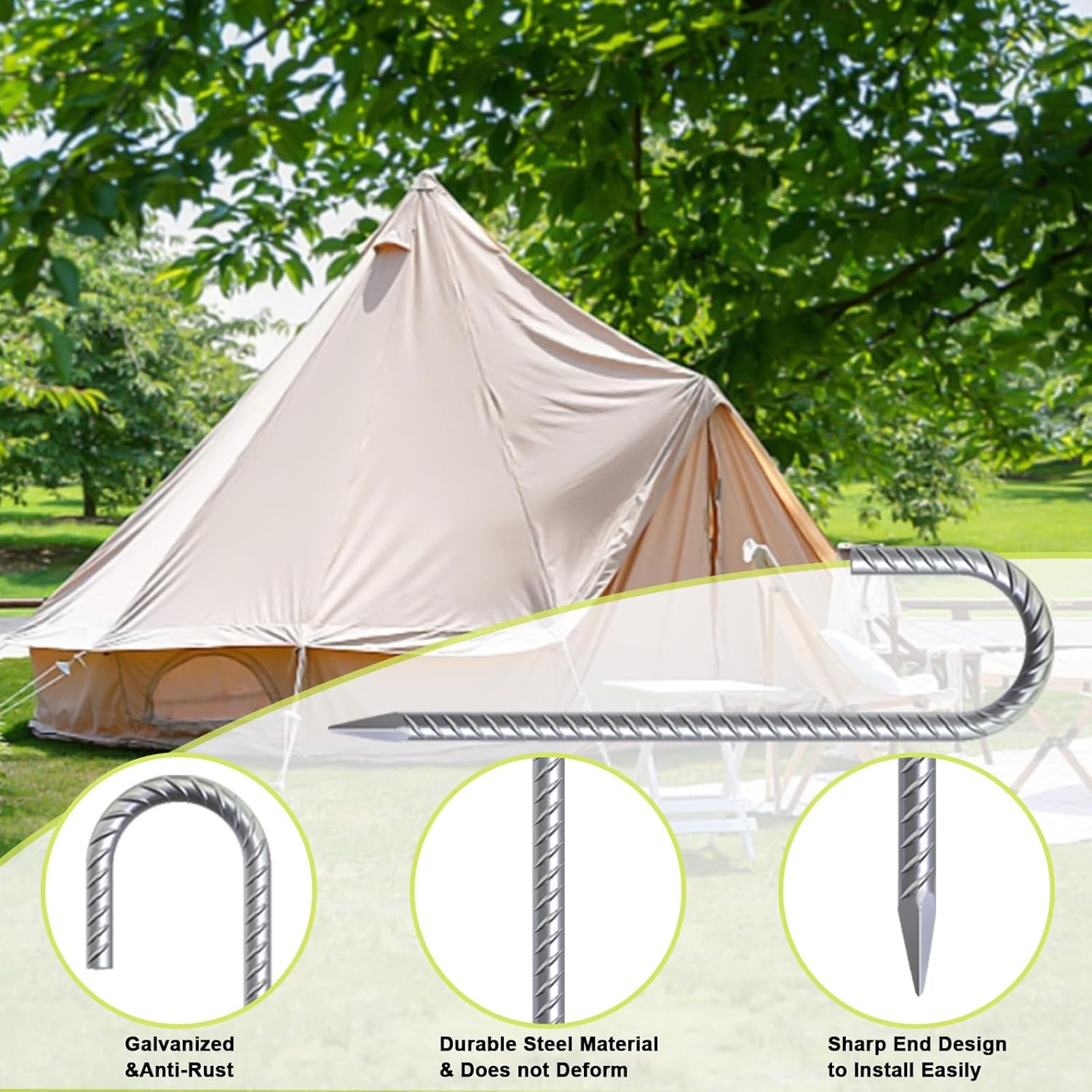 - MULTI-USE:The ground stakes heavy duty can used as plant stakes , ground anchors,yard stakes ,swing set anchors ,tarp stakes ,tent stakes ,trampoline stakes and more to anchor outdoor equipment you want.