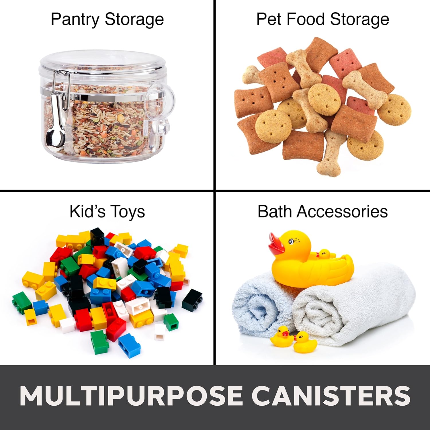 Oggi Clear Canister Airtight 72oz - Clamp Lid & Spoon - Airtight Food Storage Container, for Kitchen & Pantry Storage of Bulk, Dry Foods, Pasta, Flour, Sugar, Coffee, Rice, Tea, Spices & Herbs