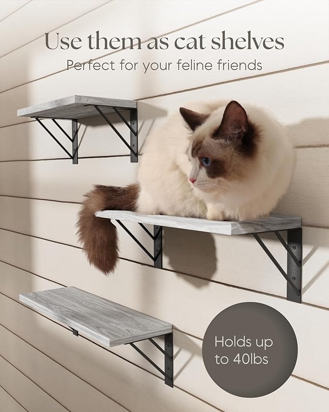 - 【Extra Uses】 BAYKA floating shelves can be used as cat shelves to "play" with your cat, giving cute cats extra space to move and rest without taking up floor space, which makes them more active. Every shelf can hold 40 pounds, and the sturdy structure allows the cat to jump on or off easily and safely.