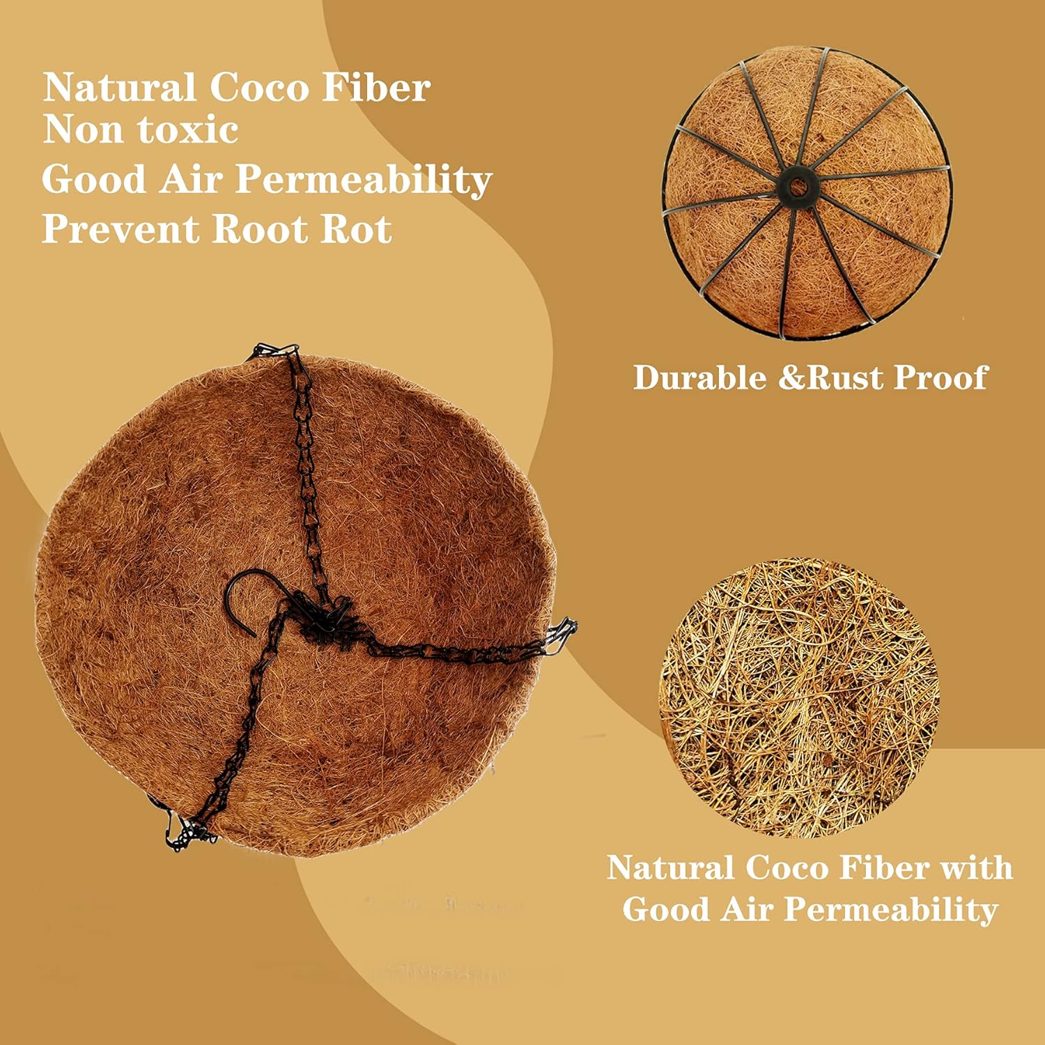 - ๐ NATURAL MATERIAL AND GOOD CARING:with the material of natural coconut fiber,hanging pots liners feature a good air and water permeability so they can provide good care for your plants. and they are environment- fiendly with the features of non-toxic and tasteless ,so you don't need to worry that they will harm your health and your plants.