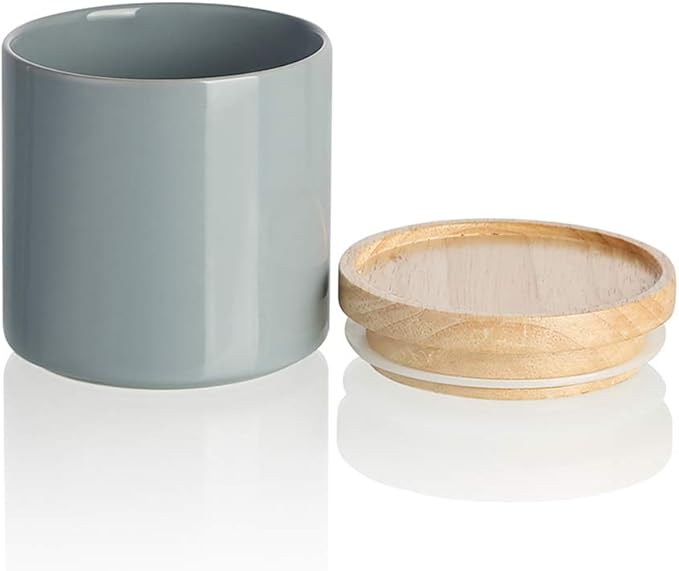 Sweejar Kitchen Canisters Ceramic Food Storage Jar, Stackable Containers with Airtight Seal Wooden Lid for Serving Ground Coffee, Tea, Sugar, Salt and More - 16 Fl Oz (Gray)