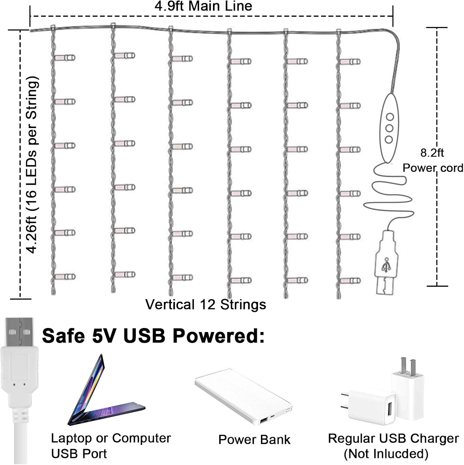 - Long Lasting Battery: Comes with USB port, you could plug this ombre curtain lights into USB interface device such as USB charger (NOT INCLUDED), Power Bank, PC, Mac or Any other USB Power Source, convenient and safe.