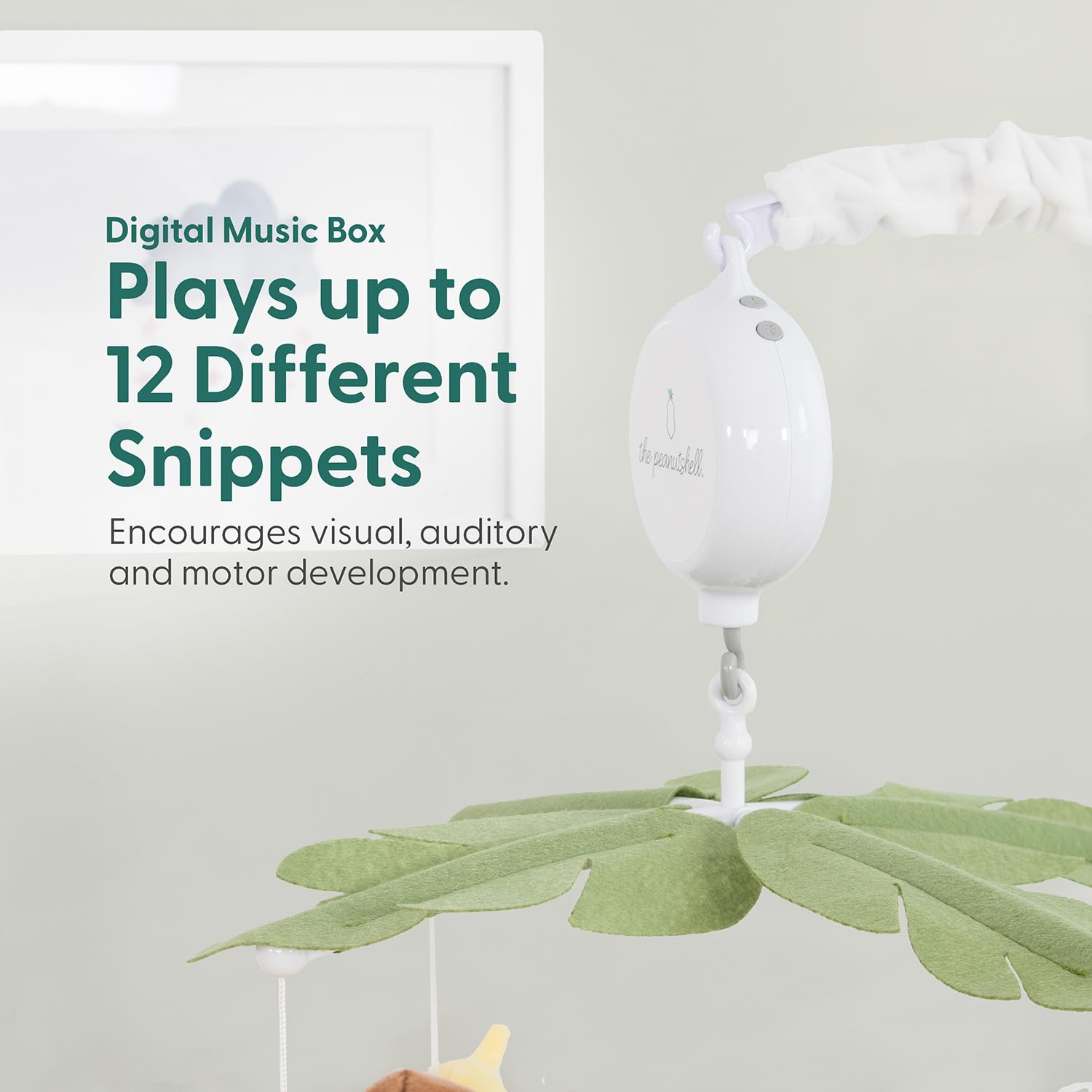 - Charming Nursery: More than just a musical nursery mobile, this piece doubles as the cutest nursery decor. The fun design, vibrant colors toys, and playful safari theme add fun to any room.