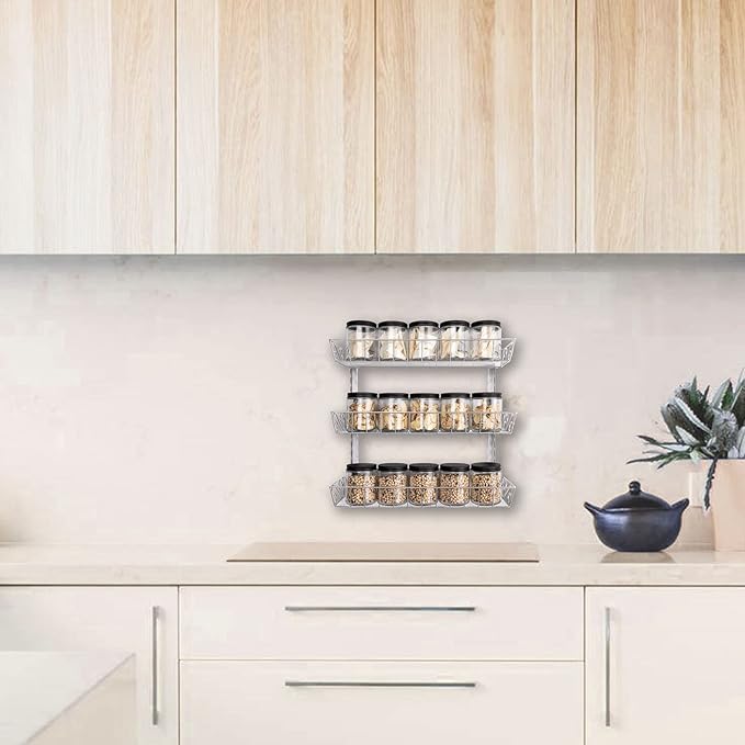 - Multi Function Wall Spice Rack: The space-saving spice rack organizer is a versatile storage rack suitable for various rooms including the kitchen, pantry, bathroom, living room, bedroom, and laundry room. It can be utilized for storing canned goods, snacks, spices, toiletries, and more. Additionally, it functions as a pantry door organizer, wall spice rack, spice holder, kitchen closet organizer, and bathroom toiletries organizer.