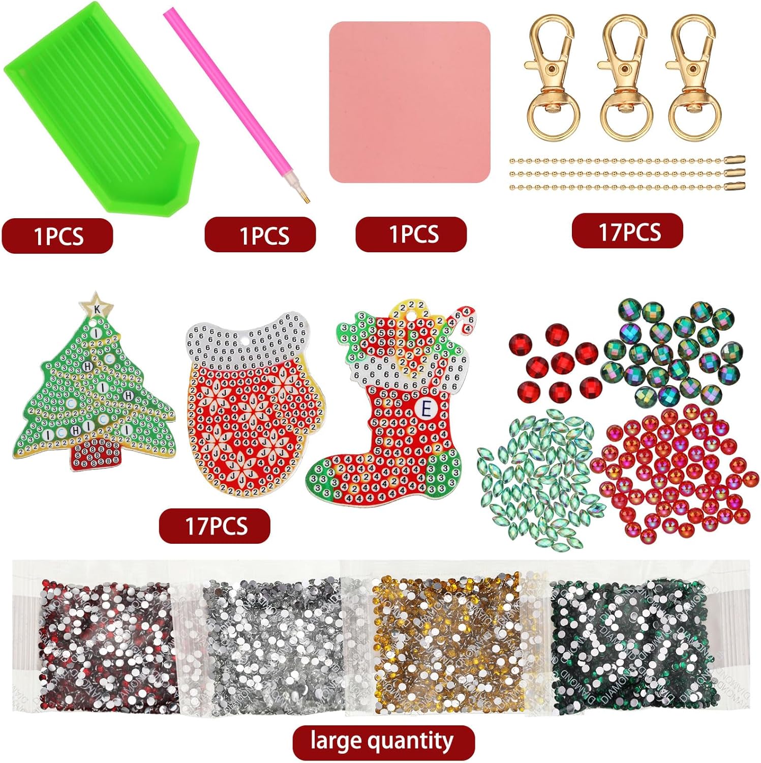 - Christmas pendant kit: comes with 17 pieces of Christmas art craft key chains in various styles, which are nice presents to your family, friends, colleagues for Christmas, birthday, New Year and so on