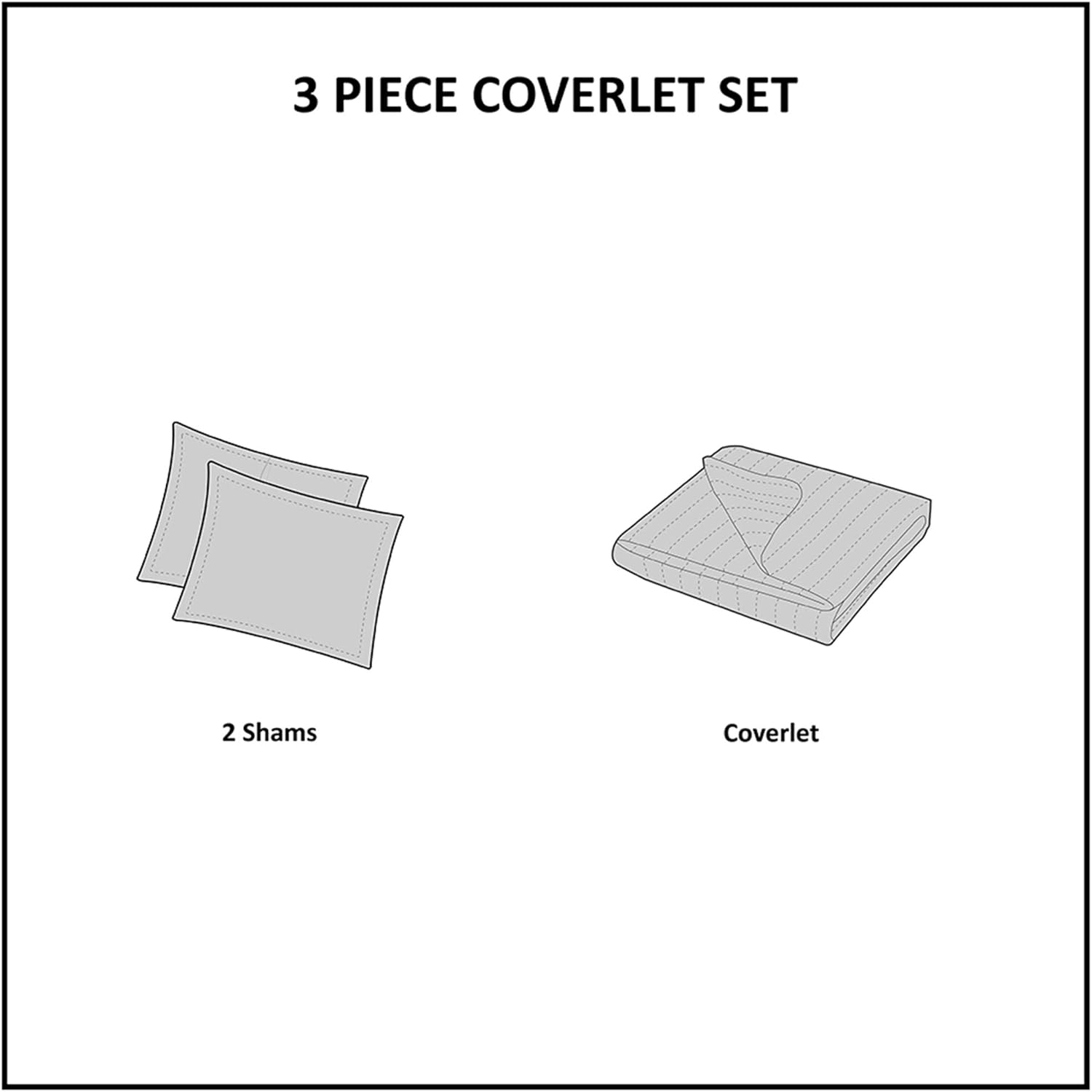 - Set includes: 1 Coverlet: 110"W x 96"L + 0.5"D, 2 King Shams: 20"W x 36"L + 0.5"D
