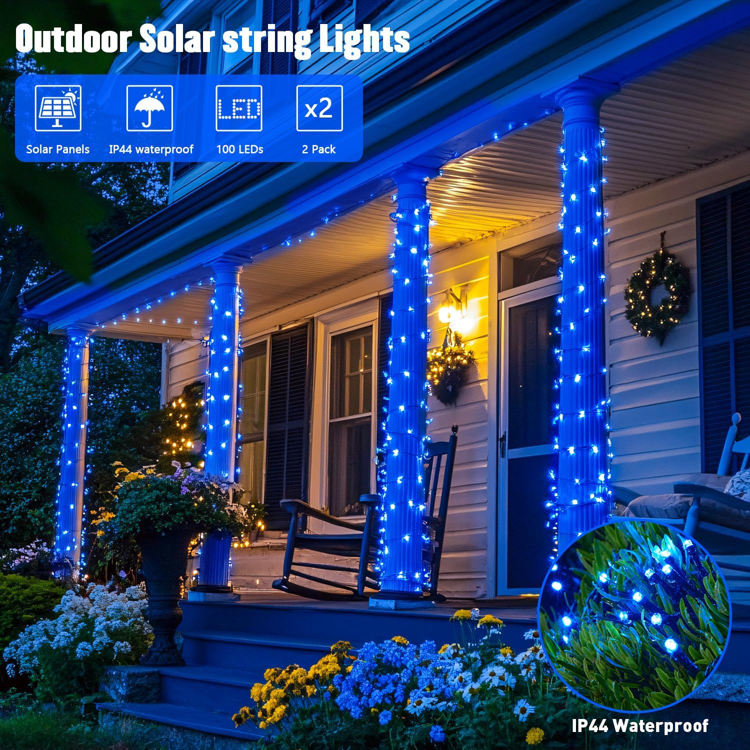 JMEXSUSS 2 Pack Blue Solar Christmas Lights: 100 LED 33ft Blue Solar Lights Outdoor, 8 Modes Solar String Lights for Outside Christmas Tree Gardens Party