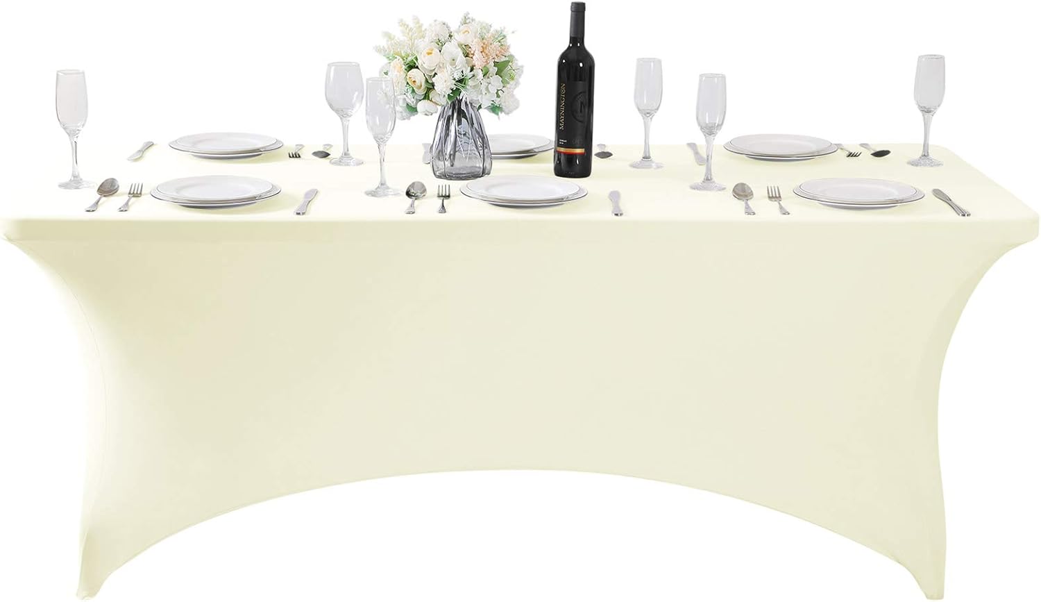 Spandex Table Cover for 6Ft or 4fT or 8ft Table Universal Fitted Stretch Tablecloth for Party, Banquet, Wedding and Events-Ivory