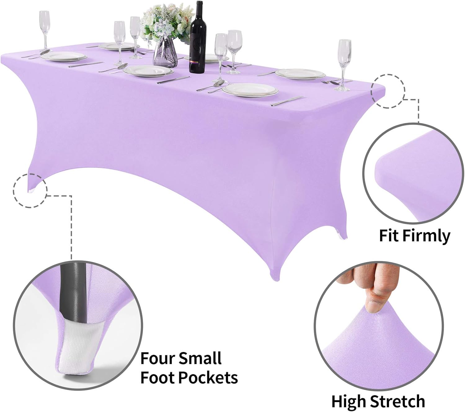 Spandex Table Cover for 6Ft or 4fT or 8ft Table Universal Fitted Stretch Tablecloth for Party, Banquet, Wedding and Events-Lavender