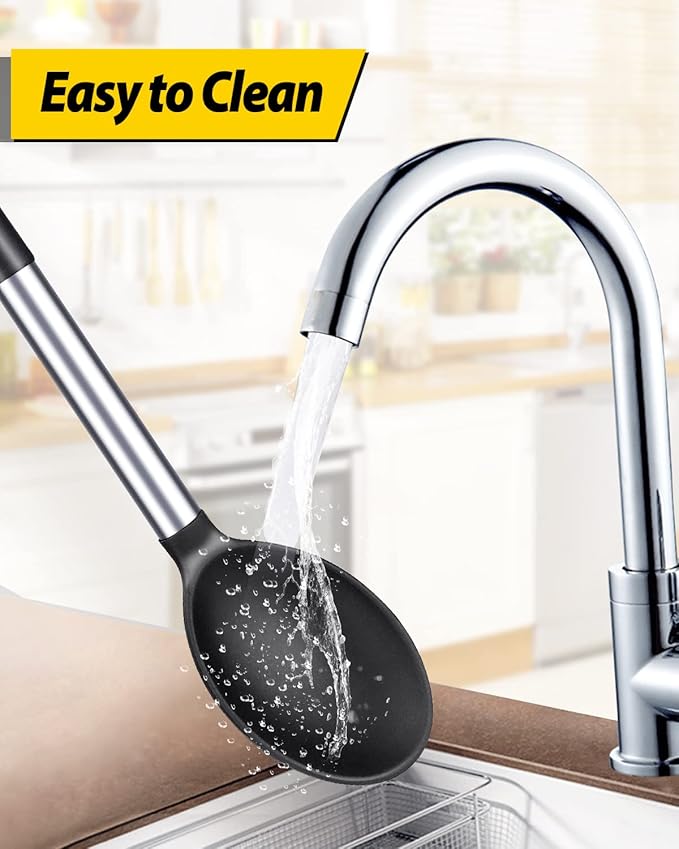 - More Safe and Healthy : Our silicone spoons are made of food-grade silicone, free of BPA;Even at high temperatures, there is no need to worry about melting or deforming;And the soft silicone head won't scratch the coating, it can better protect your pot