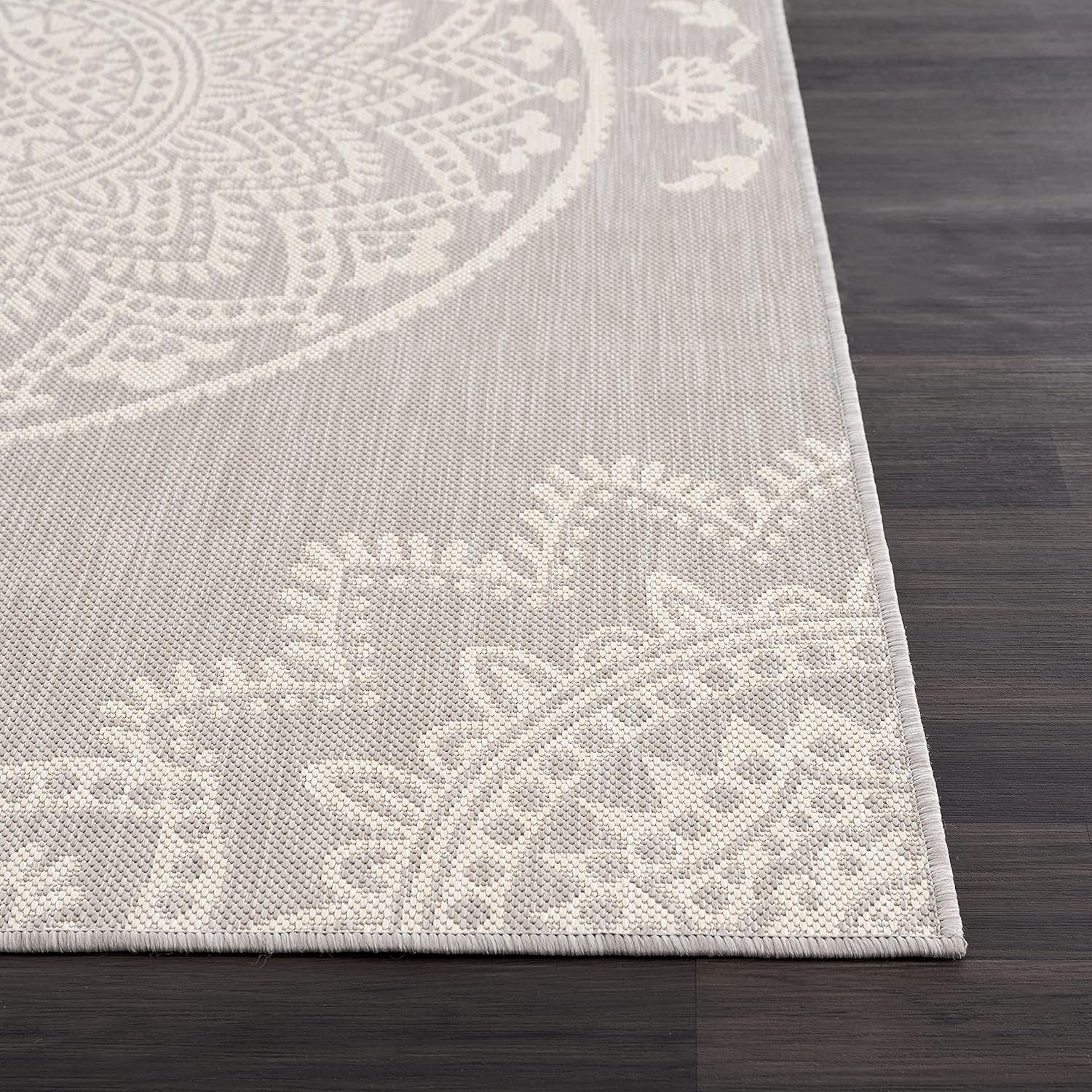 CAMILSON Outdoor Rug 6x9 Modern Area Rugs for Indoor and Outdoor Patios and Porches - Waterproof, Washable, Non-Shedding, Easy-to-Clean Outside Carpet (6 x 9, Medallion - Grey/White)