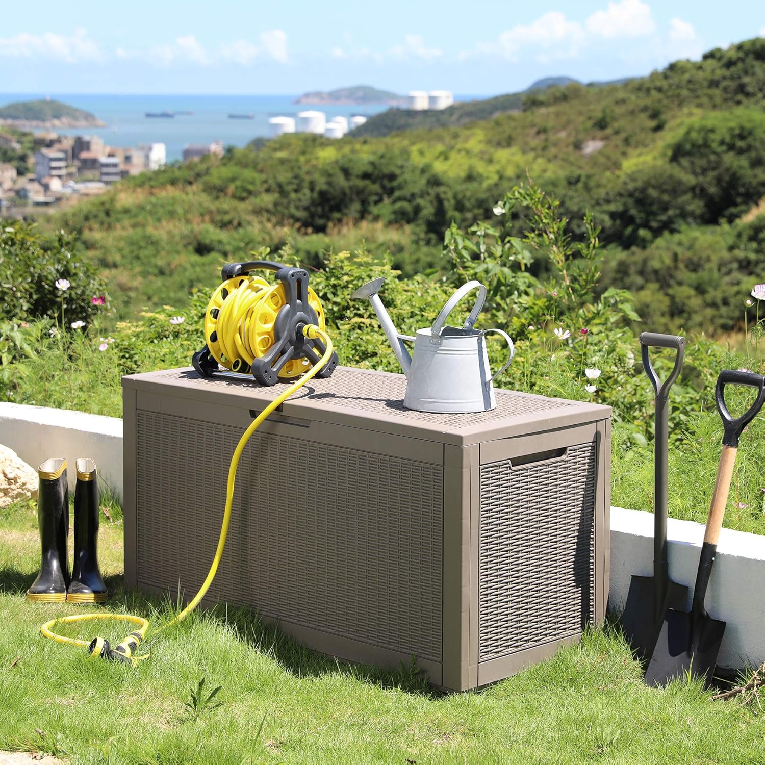 - VERSATILE STORAGE- Can be used indoors or outdoors to store patio furniture cushions, gardening tools, outdoor supplies, and pool accessories; Lockable lid safely protects your items.