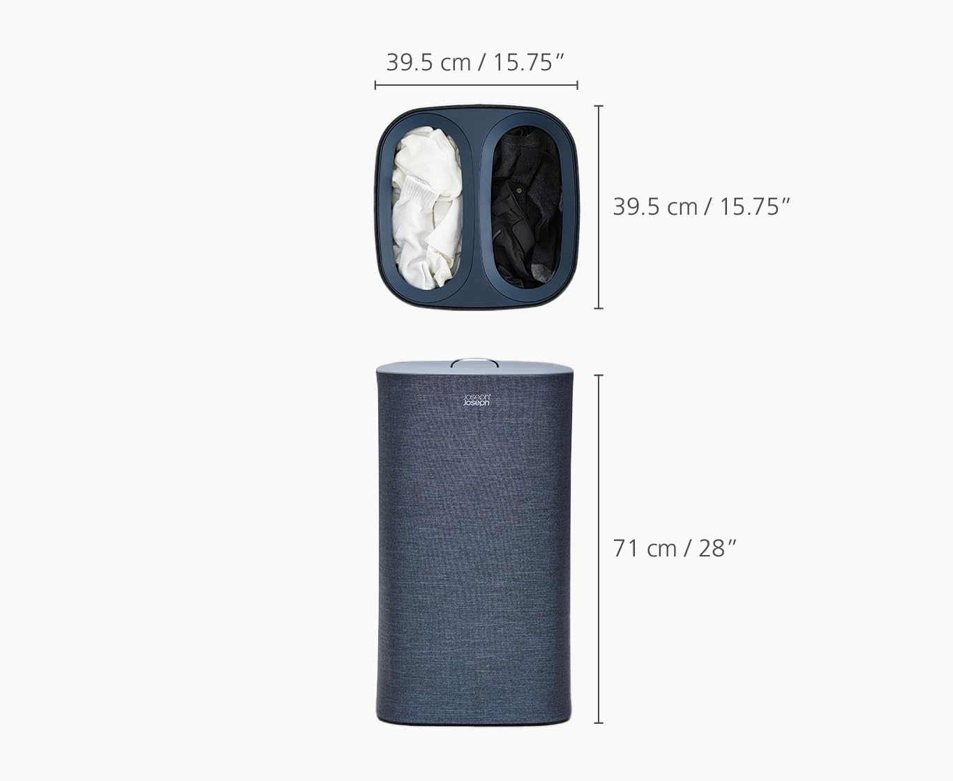 Joseph Joseph Tota 60 liter/15.8 gallon Laundry Hamper Separation Basket with lid, 2 Removable Washing Bags with Handles- Carbon Black