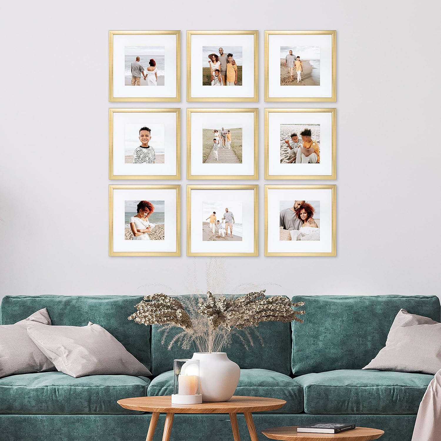 Sheffield Home 9 Piece Gallery Wall Frame Set, 12x12 in. Matted to 8x8 in. (Gold)