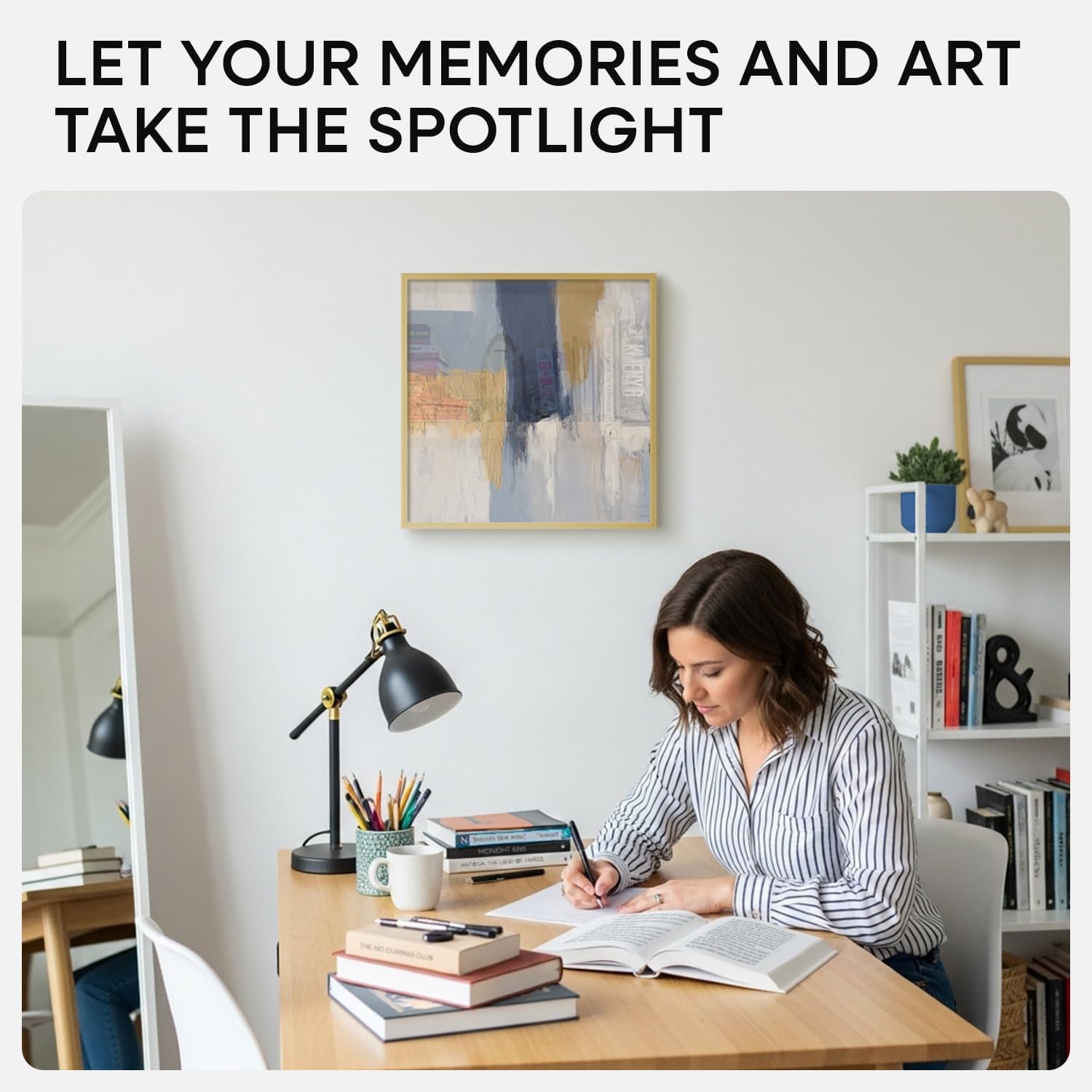 - SUBTLE GLOW. SIMPLE FORM. This frame’s polished champagne gold hue adds just enough shine to catch the eye. Clean lines and a minimalist build keep the look modern and uncluttered.