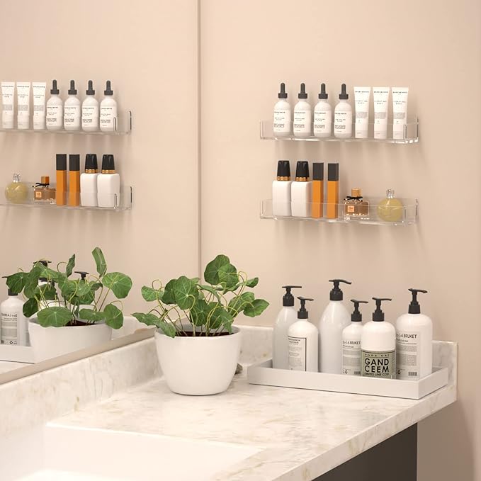 - WALL MOUNTED SPICE RACK - The unique design is just to make your home more tidy, and the transparent material allows you to easily get the spices you need, so as to get rid of looking for the condiments you want on the chaotic tabletop, saving you time in making food. The added baffle on the side can keep your spices on the shelf more safely. Warm Tips:Does not contain jars.
