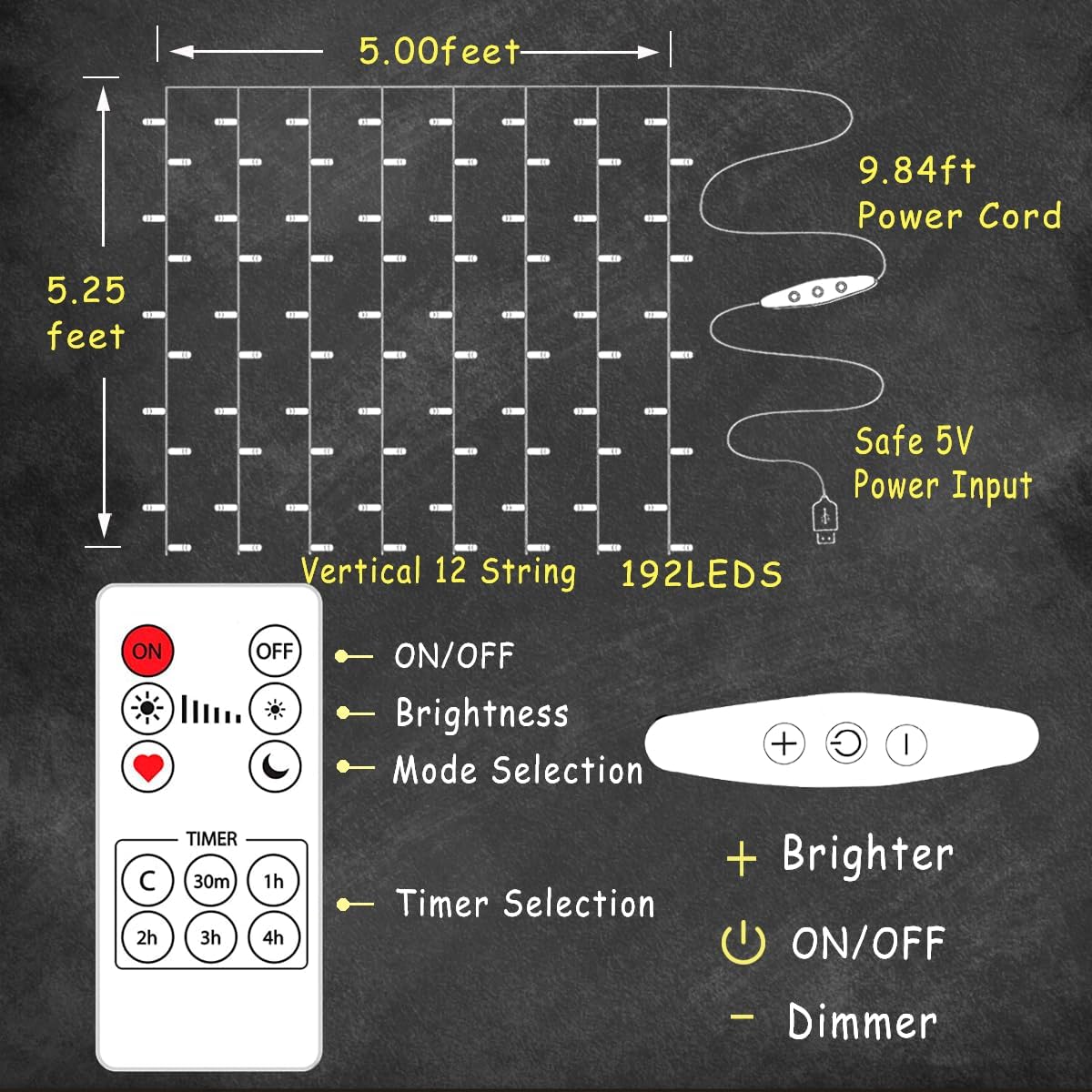 - 【REMOTE CONTROL & IN-LINE DIMMER SWITCH】You can set timer, select brightness and set day&night mode through the included remote. 6 Levels of Brightness in-line convenient for you to choose the perfect brightness and use it day or night. The press "+" or "-" is easy for you to operation. And it memorizes the brightness setting when you turn on the lights next time.