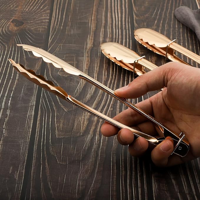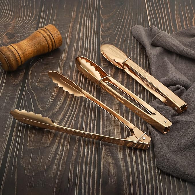 MSY BIGSUNNY 9 Inch Kitchen Food Tongs for Cooking and Serving- Aluminum - Set of 3 (gold-plated)