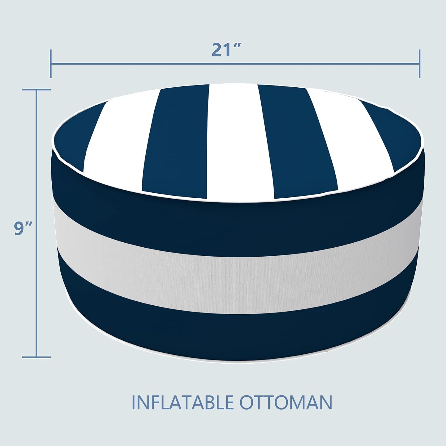 - Package Including: This bundle come with 1 pc indoor outdoor inflatable ottoman measures D21" x H9" (53 x 23cm). Made of durable and soft polyester fabric, sturdy inflatable PVC liner