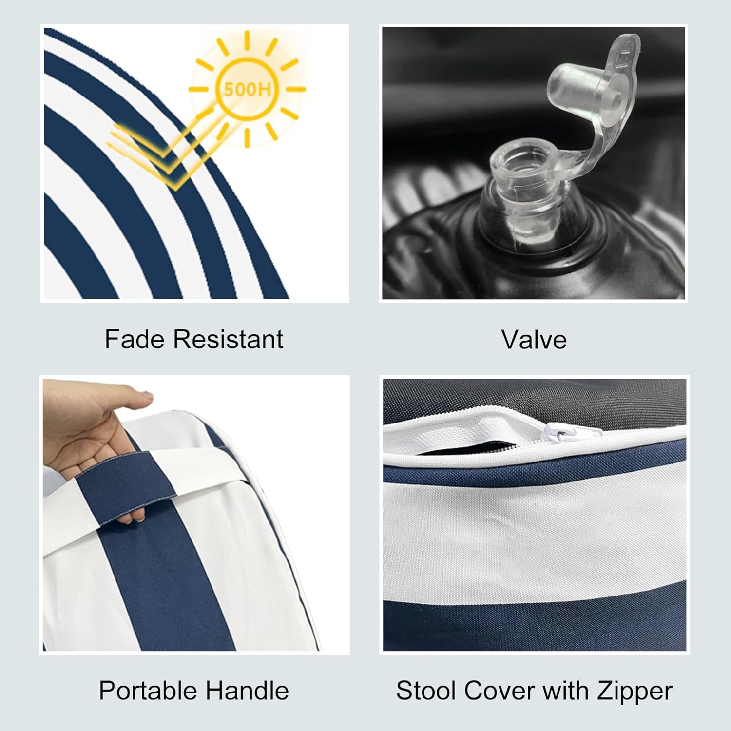 LVTXIII Inflatable Stool Ottoman Footrest with Handle, All Weather Foot Rest, Indoor or Outdoor Use for Home Patio Garden and Camping, D21 x H9, Cabana Navy