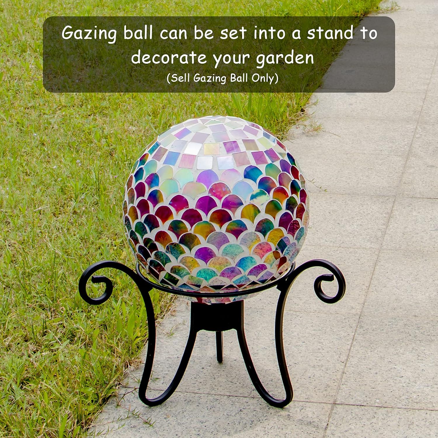 - Sturdy Material: Garden gazing ball is handmade of durable glass and long-lasting cement, glass sphere is in several complementary shades of iridescent to keep its reflective shine and make it be beautiful mosaic gazing ball