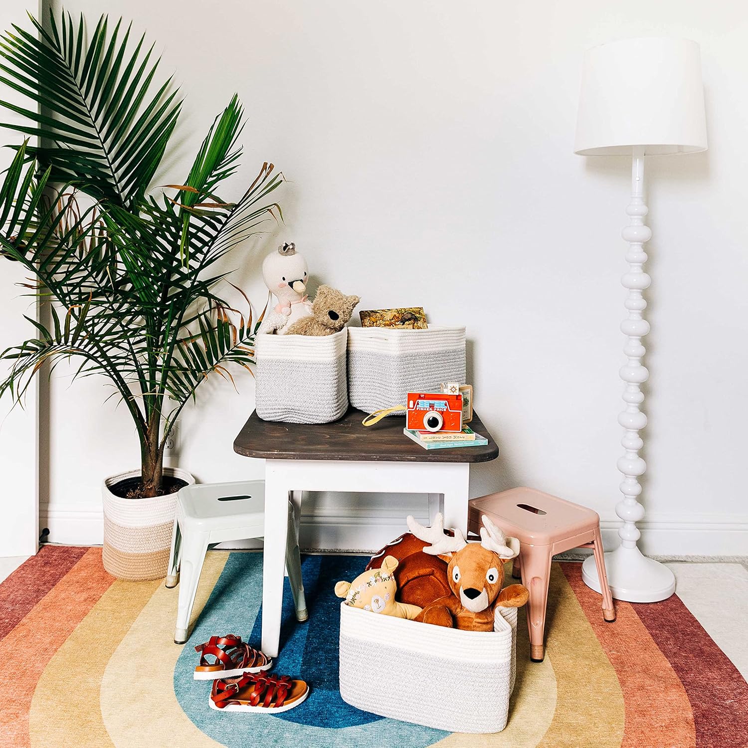 - Discrete, Built-In Carry Handles – These fabric rope baskets for storage also feature slim hand holds built right into the sides of each round basket for a seamless look that’s also functional. Perfect for picking up toys or carrying items around the house.