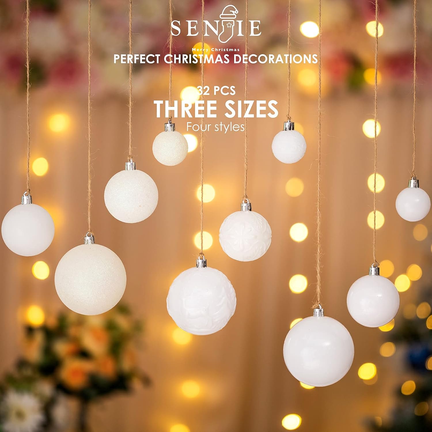 Christmas Ornaments for Xmas Trees,White Shatterproof Christmas Ball Ornaments