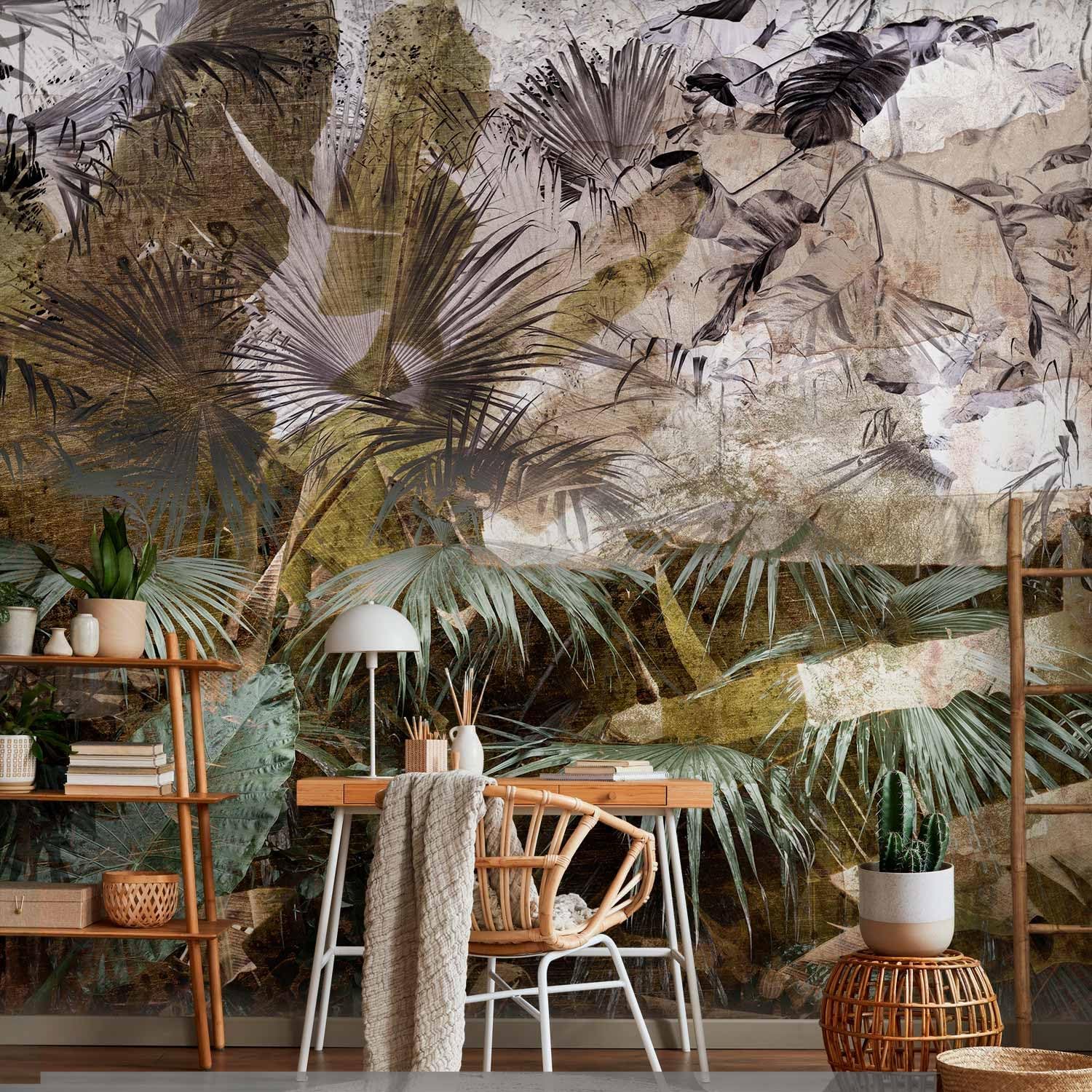 artgeist Wall Mural Tropical Leaves 96x69 in - XXL Peel and Stick Self-Adhesive Wallpaper Removable Large Sticker Foil Wall Decor Print Picture Design Jungle Nature Palm Green Leaves b-C-0789-a-a