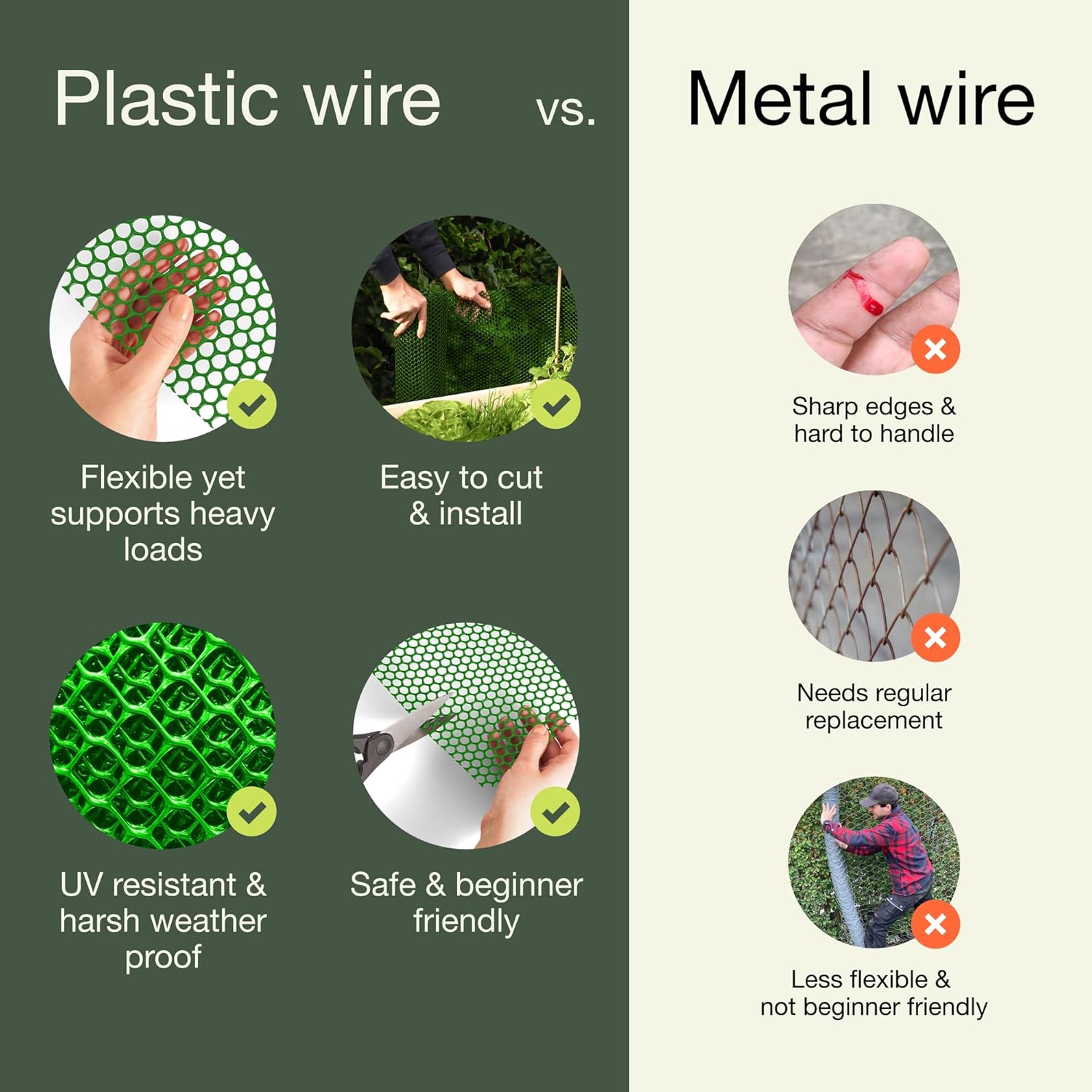 - Sleek And Professional: The green plastic mesh has a polished look that fits right into your garden, yard, or balcony. Keeping its style and function, this plastic chicken wire is a favorite for DIY fans wanting to spruce up their space