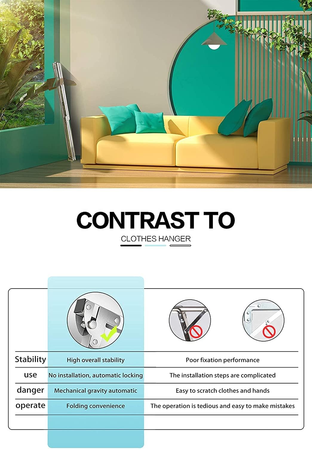 - [ NO NEED TO INSTALL] No complicated installation tutorial is required, just 2 steps, take out the cloth drying rack, and pull the clothes drying rack as shown in the manual to put it into use. (20 windproof hooks are free provided, which can be put on the drying rack clothing for use).