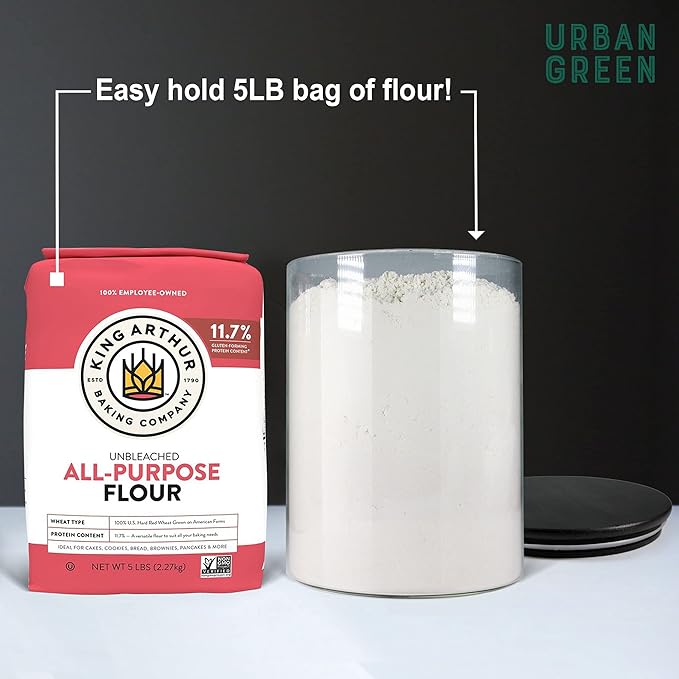 - ✅ 2021 NEW STYLISH BLACK LID: Looking for black and white, cool and stylish home deco? These Urban Green glass food storage canister sets with black lids are perfect for contemporary pantry design. We carefully selected 5 different sizes from 6oz to 100oz that can store any dry food, such as pasta, beans, nuts, cookies, spice or flour. Try our black lids glass jars for a new modern pantry organization.