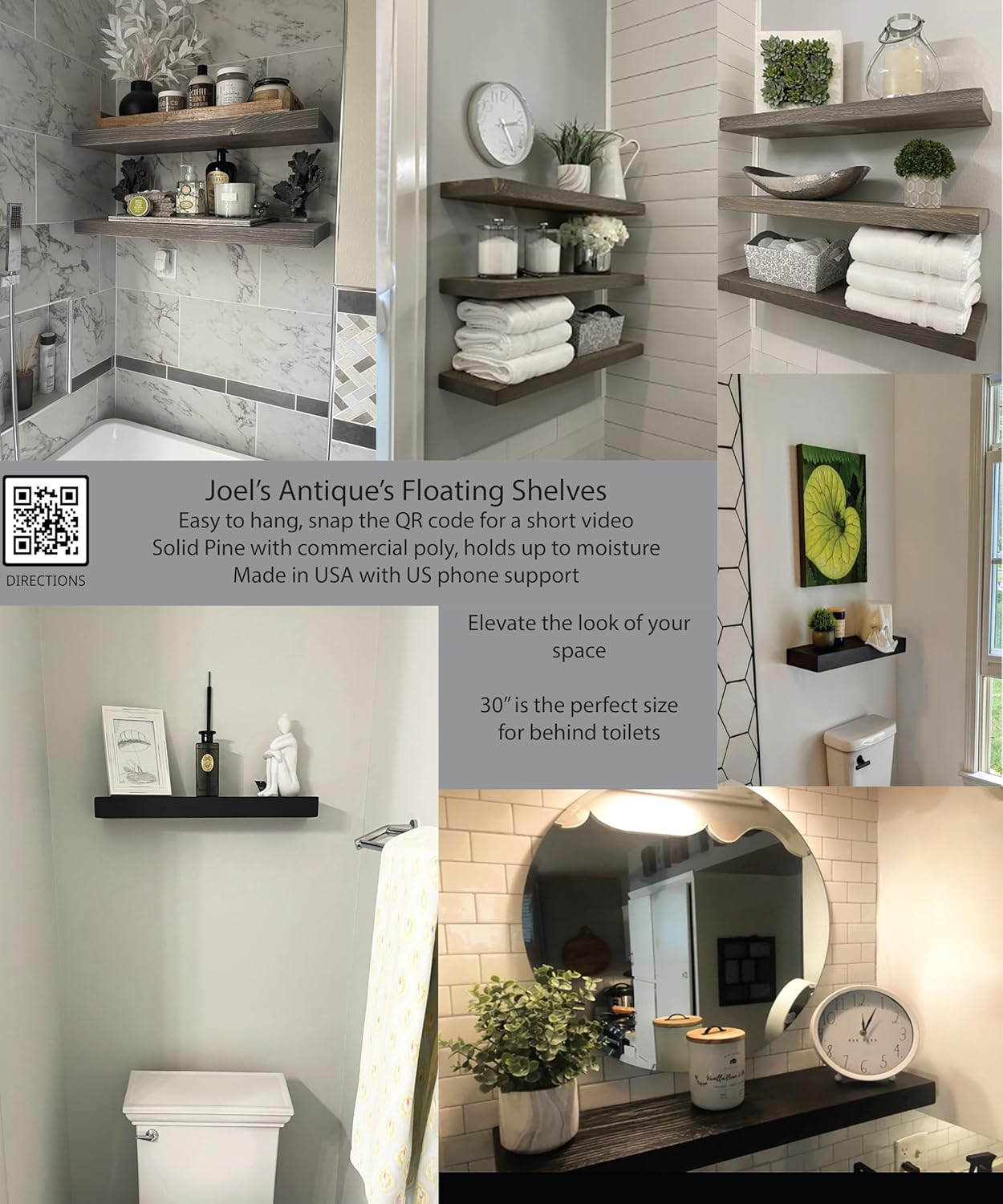 Joel's Antiques - 30 Inch Wooden Floating Shelves for Wall - 30x8x2 in - Made of Natural Wood - Heavy Duty Rustic Wall Shelves for Bedroom - Perfect for Living Room, Kitchen - Grey