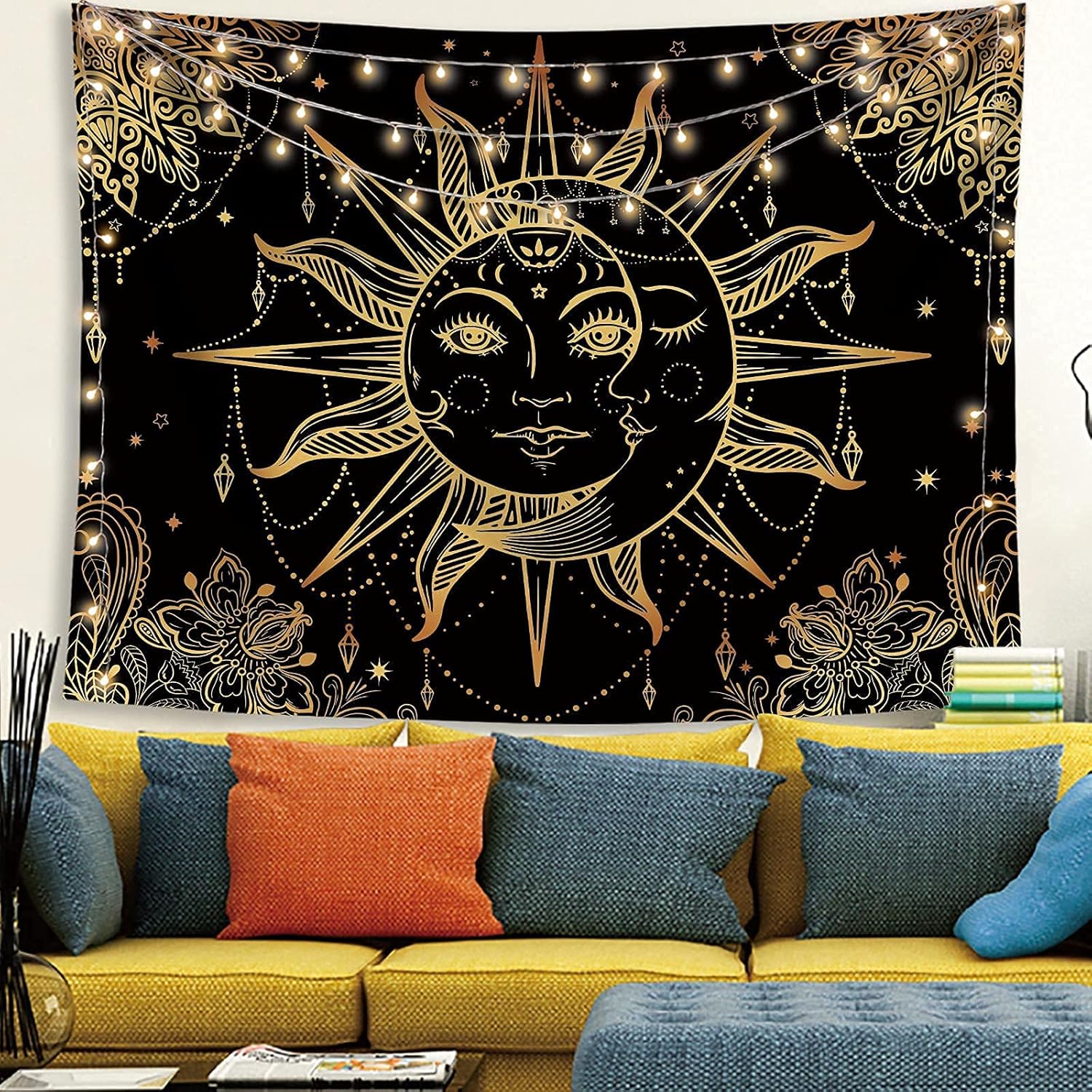 Lunerfex Hippie Sun and Moon Tapestry Bohemian Tapestry Aesthetic Cute Tapestries for Bedroom and Living Room Decor Sun 60×80 Inches