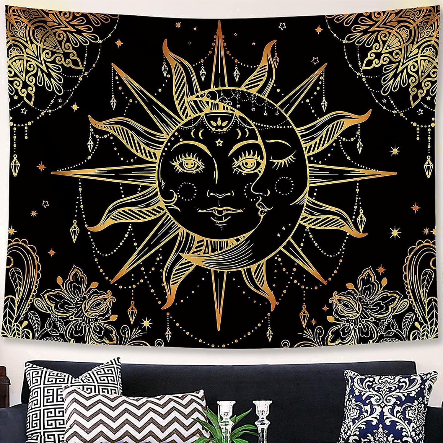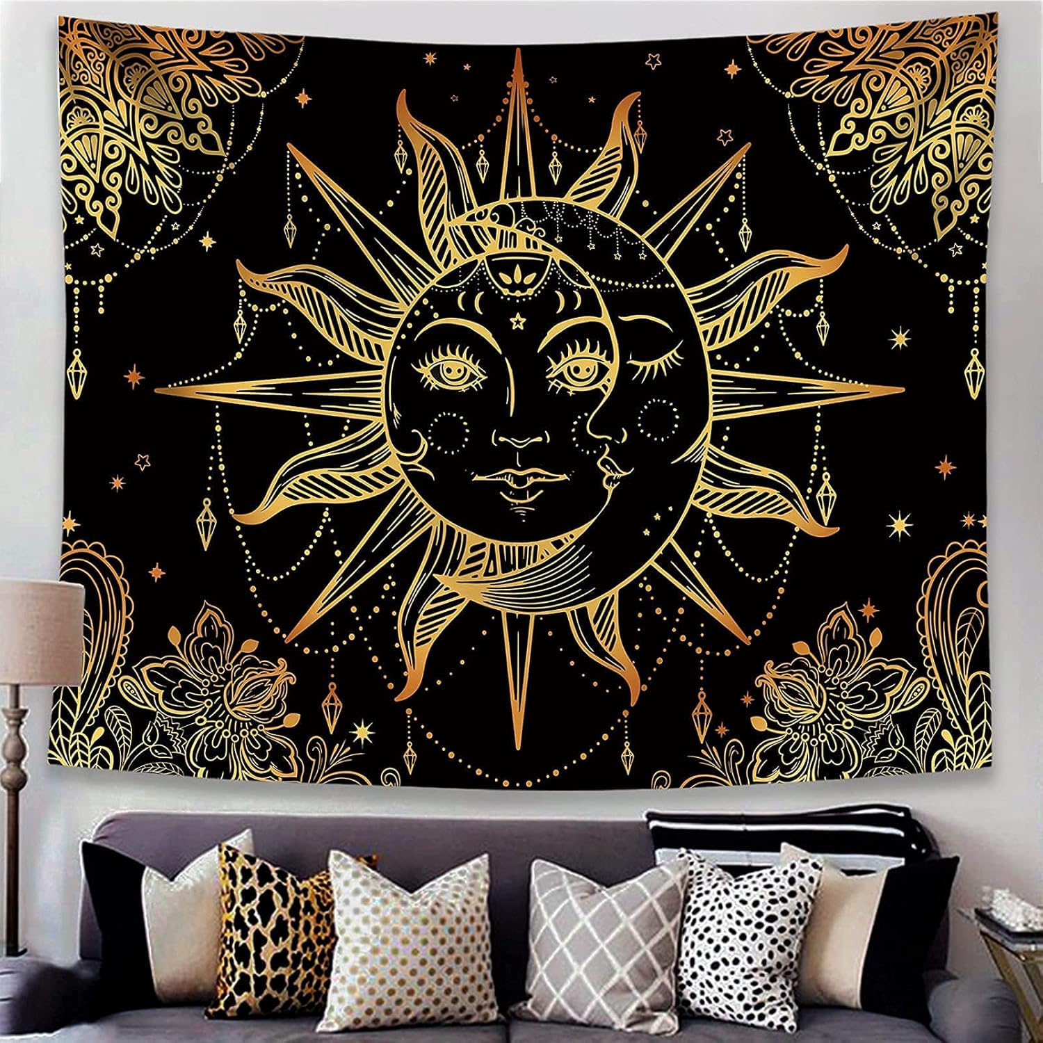 Lunerfex Hippie Sun and Moon Tapestry Bohemian Tapestry Aesthetic Cute Tapestries for Bedroom and Living Room Decor Sun 50×60 Inches