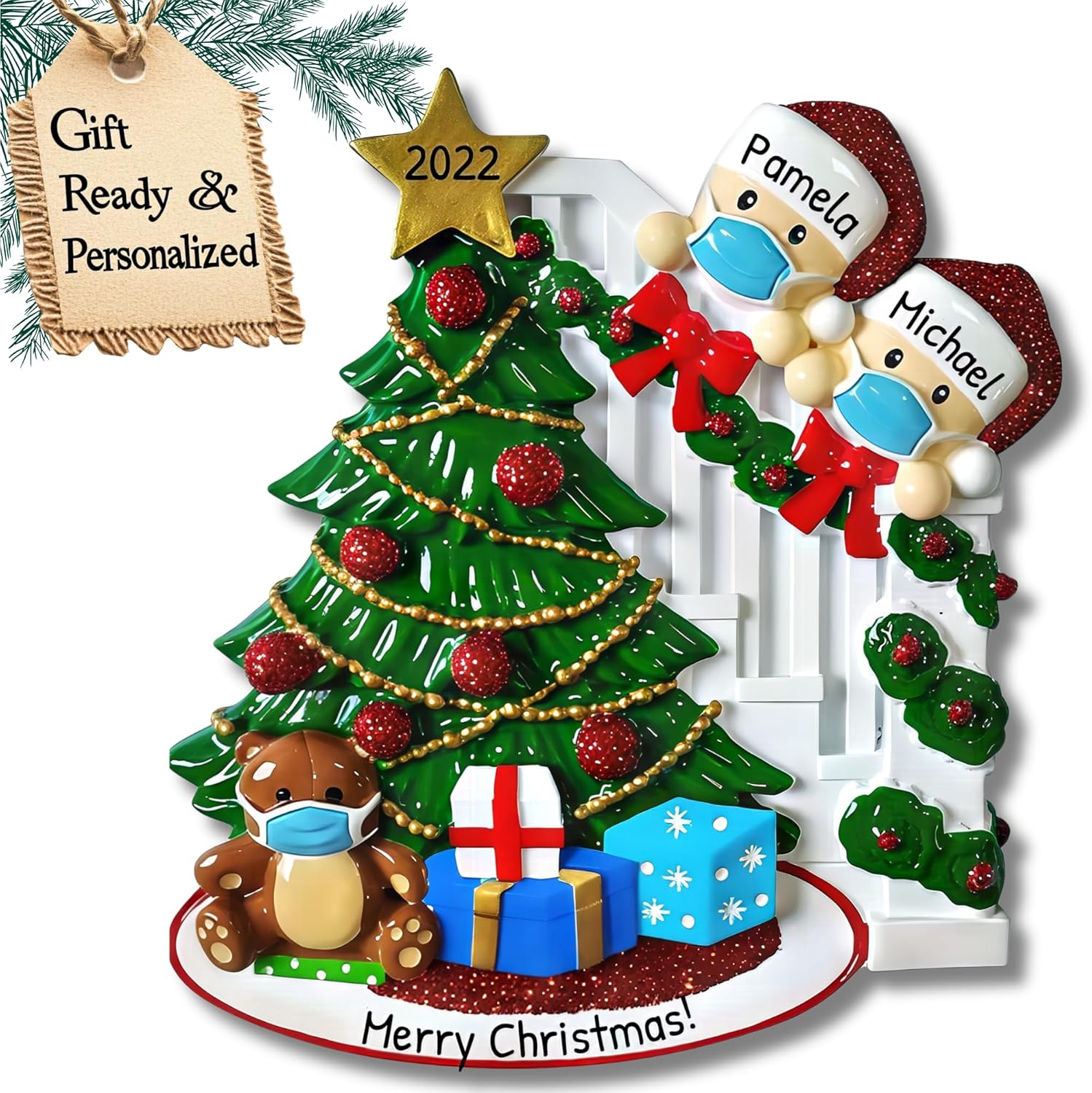 - ๐ Celebrate Your First Holiday Together: This kids in Santa hats with masks ornament captures a cheerful scene with a Christmas tree with glitter red balls. It features a staircase garland and bow decoration and includes presents and masked teddy bear display, making it a perfect pandemic holiday keepsake 2026 design. Capture the magic of your love story with our first christmas ornament 2025. This personalized couple ornament is perfect for marking milestonesโwhether it's your first christmas together ornament or a meaningful holiday as a newly engaged couple starting new traditions.