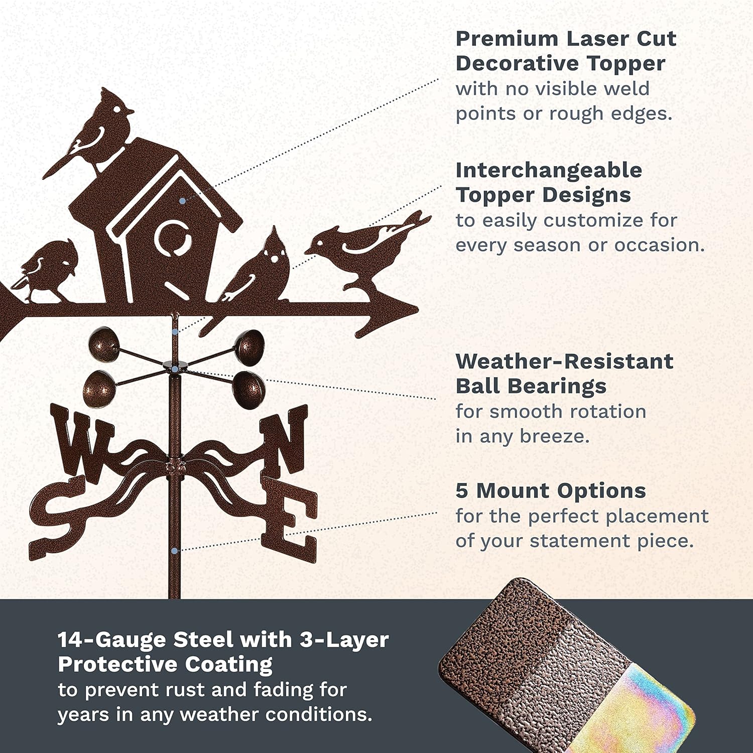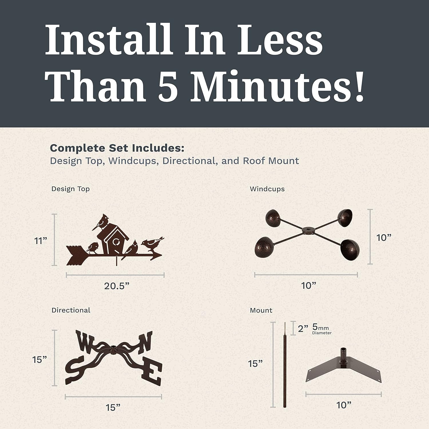 - Complete Kit — EZ Vane Birdhouse weathervane includes an intricate laser-cut Birdhouse design topper, roof mount, windcups with sealed ball bearings, and an EWNS indicator to show wind direction.