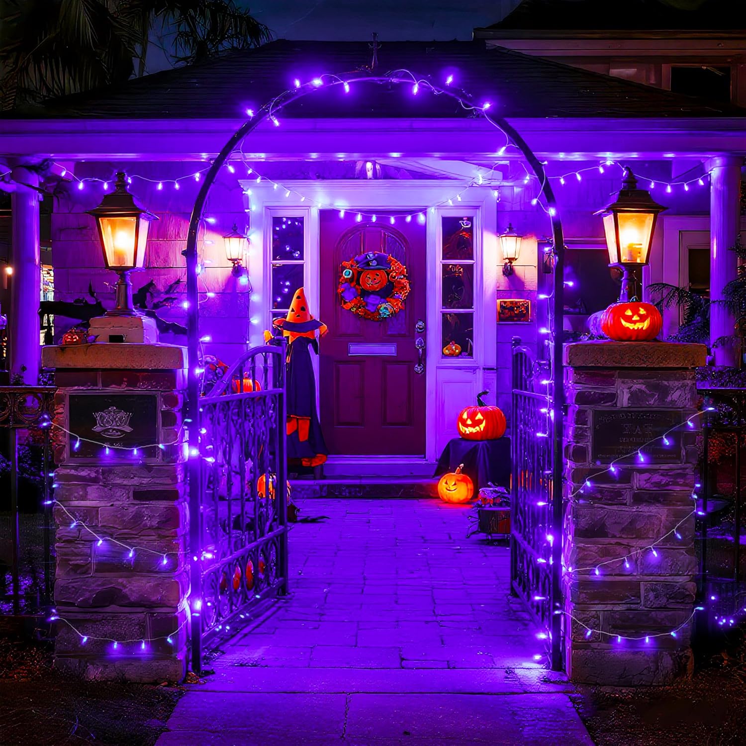 - 【Super Long & Super Bright】 The 168ft Halloween string lights outdoor with 600 purple LED .You can have an extra-long LED string lights, which is enough to decorated your house and the Halloween tree in your garden. Wrap them around your fireplace, or drape them across windows. It use ultra-high intensity LEDs for vibrant and bright lighting to create a mystical ambiance in any space for Halloween, Christmas party, indoors and outdoors use.