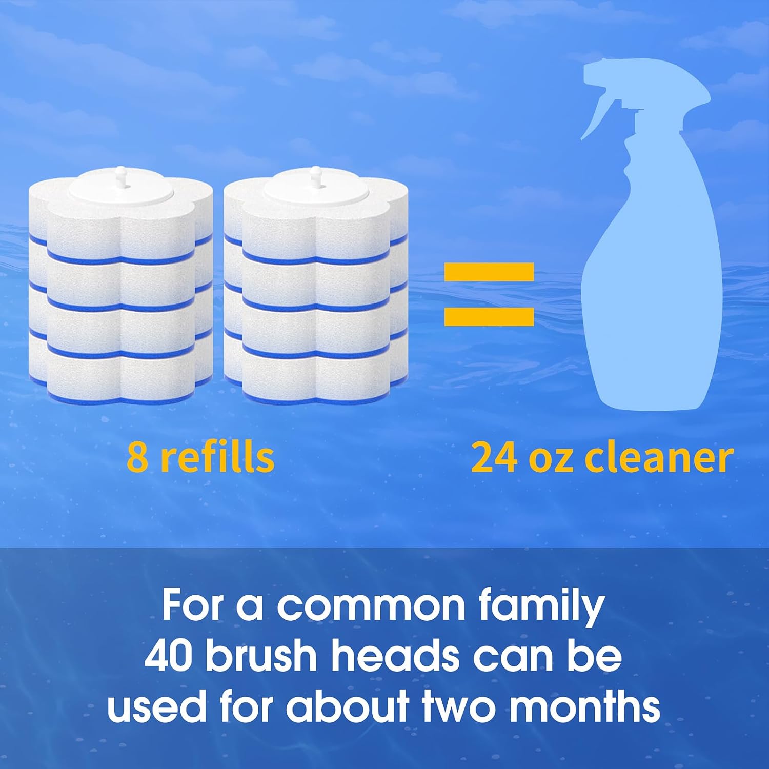 - Disposable Toilet Brush- Each toilet cleaner brush refill has a 2.5" foam sponge + scrub cloth for maximum cleaning power. Stays securely attached—one head can clean multiple toilets before disposal!