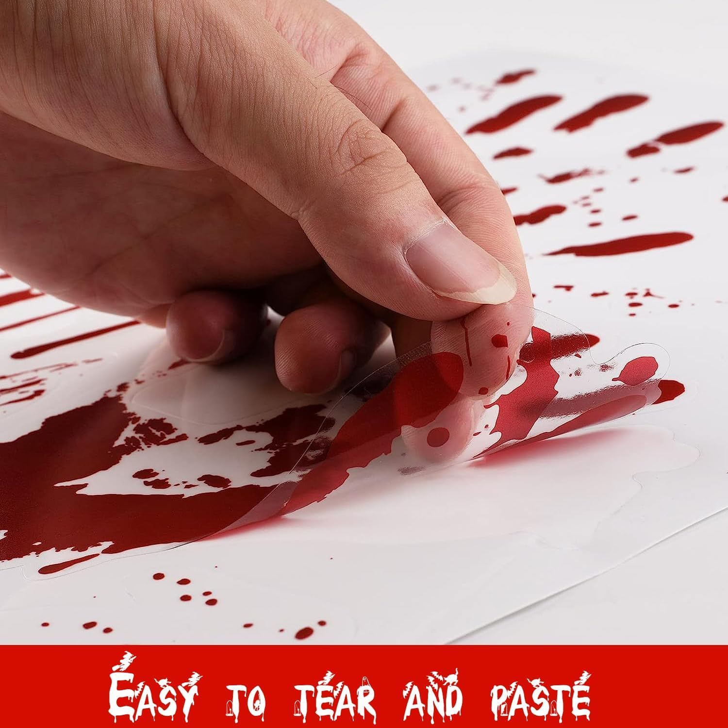 - Easy to Use: These blood prints and splatters window clings are made with Self-adhesive PVC that can be removed without leaving residue