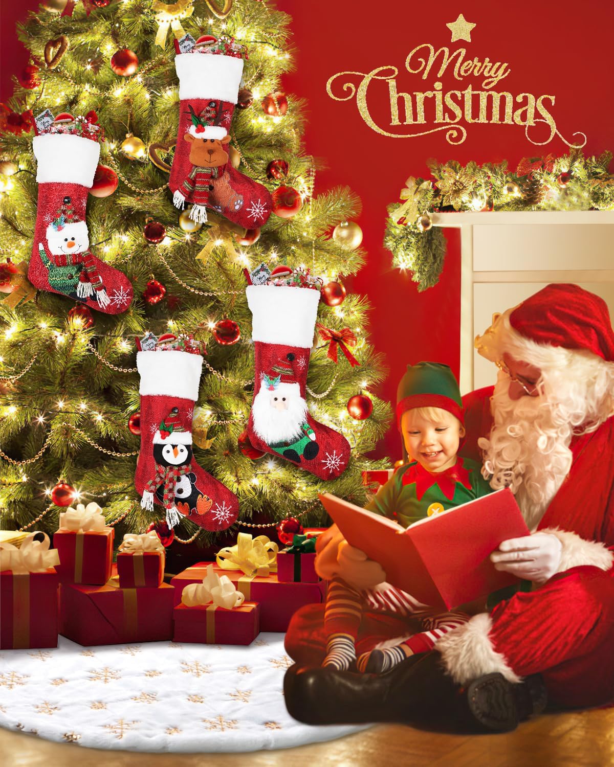 - Soft and warm material: This Christmas tree skirt is made of artificial fur, double-layer design, non-woven fabric on the back, white artificial fur and silver sequins embroidered snowflakes on the front, high-quality plush fabric material, soft and comfortable texture. The diameter of 122 cm/48 inches is very suitable for all kinds of trees from 5 feet to 7 feet, from traditional to artificial types