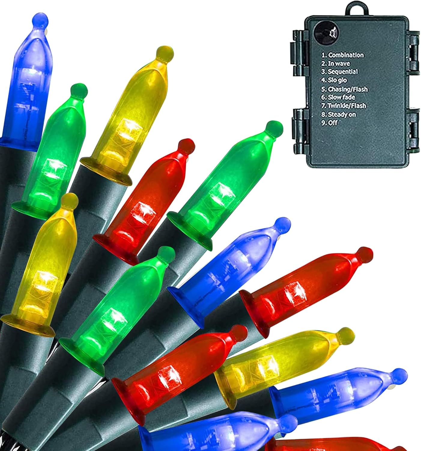 - 8 Lighting Modes: Dazzle Bright mini string lights has 8 different lighting methods, including combination, in wave, sequential, slo glo, chasing/flash, slow fade, twinkle/flash, steady on. Press the button on the battery box to select the lighting mode you like.