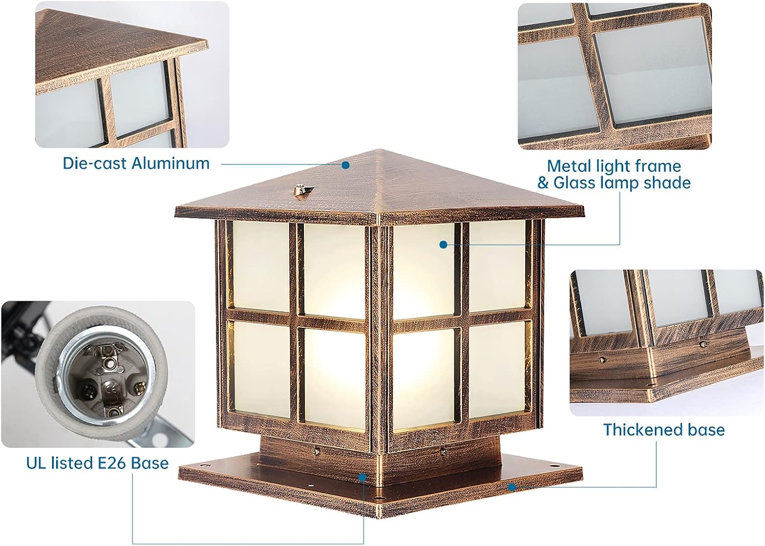 - ☀ Vintage Pillar Lantern for Exterior House Decoration: Featuring an unique lamp body design and glass shade, completely weather-resistant for any outdoor environment, perfect for garden, backyard, courtyard, patio, balcony, porch, pathway or entryway.</br>