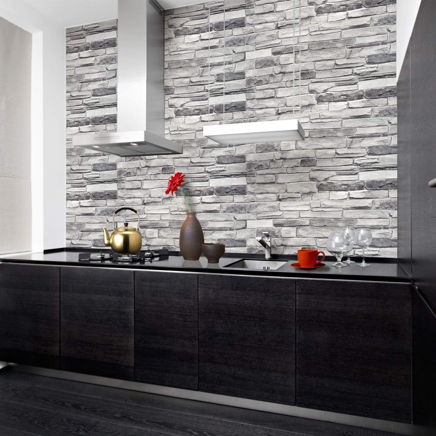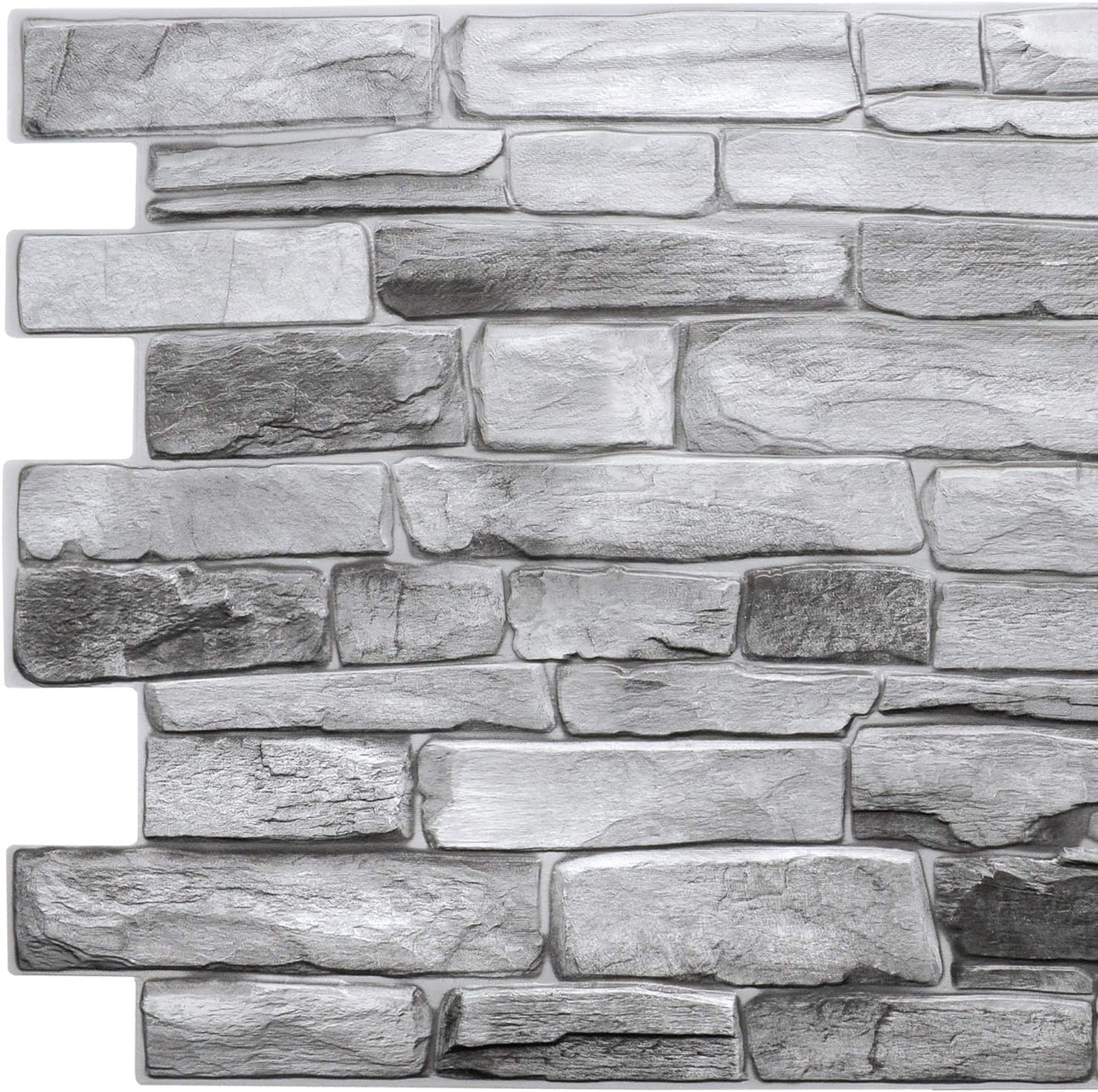 Dundee Deco GRAZPG7117-10 Grey Faux Stone PVC 3D Wall Panel, 3.2 ft X 1.6 ft (98cm X 50cm), Interior Design Wall Paneling Decor, 5.3 sq. ft. (0.49 sq. m) Each, Pack of 10
