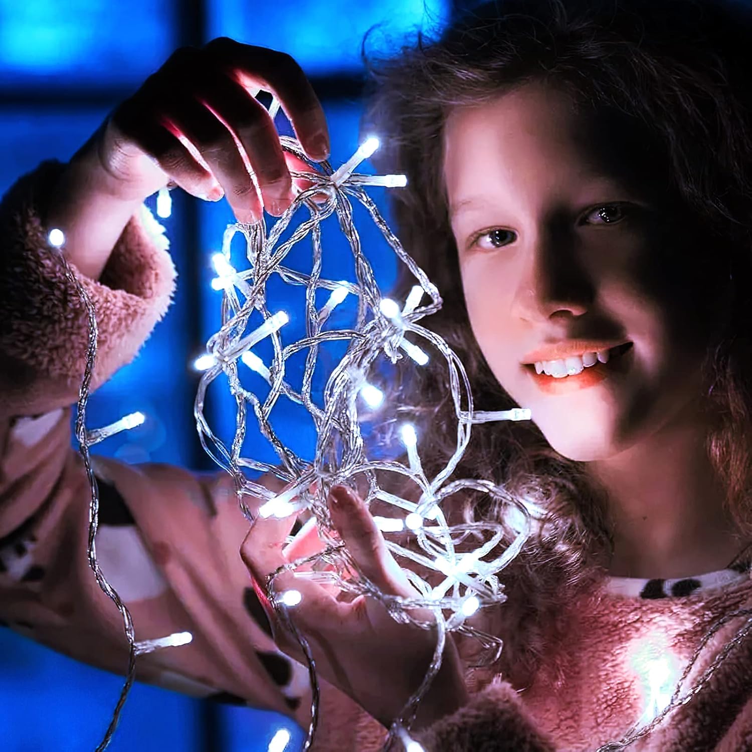 - 【Waterproof for icicle lights outdoor 】 Icicle light is 42.6Ft/ 13m long in total, wire with LEDs: 32.8Ft/ 10m, lead cord without lights: 9.8Ft/3m, drop maximum lengths: 2.4Ft/0.73m. This Christmas light is extendable which supports a max of 2 sets end to end connected, freely connected according to your demand. Notes: The AC adapter should be protected from rain when using it outdoor.