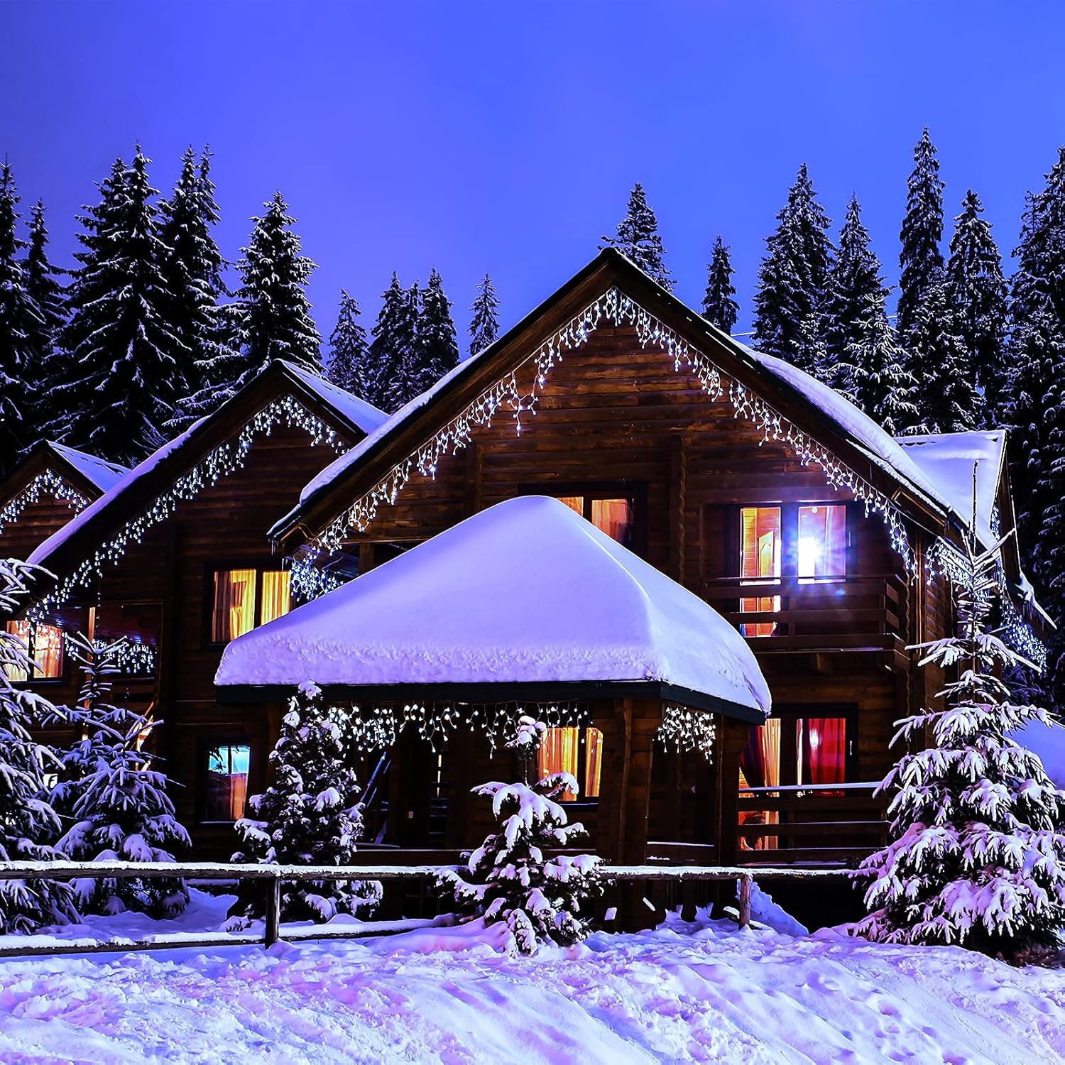 - 【Safe Use LED Icicle Christmas Lights】400 LED icicle lights,each Christmas icicle light adopts premium clear wire with insulation coating, which is corrosion-resistant, aging resistant. Strictly tested and meets the US requirements of string lights UL safety standards to ensure & maximize the safety. 29V low output voltage makes it safe enough for use. IP44 waterproof for indoor and outdoor use.