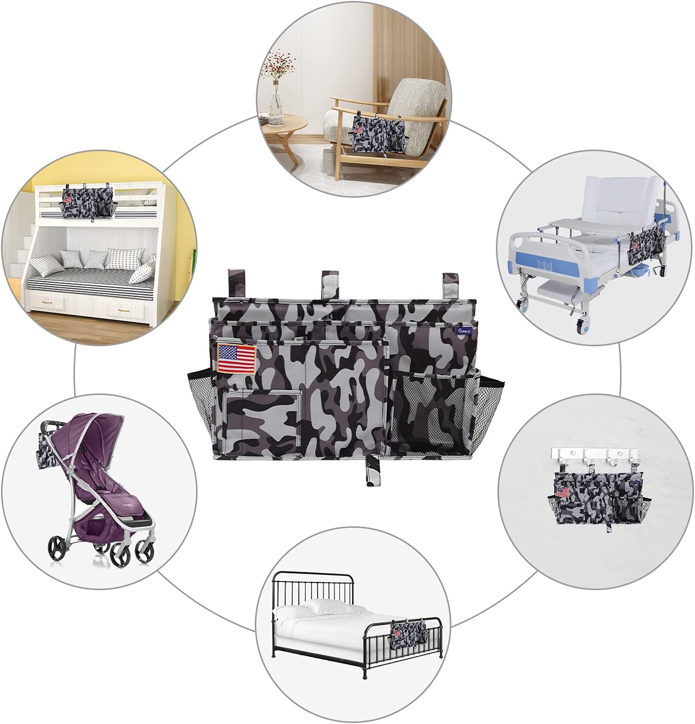 - Multi-Purpose: The bedside organizer is suitable for kid beds, top bunk beds, chair arms, and baby strollers, a good choice for RV, home, hospital, living room, or college dorm.