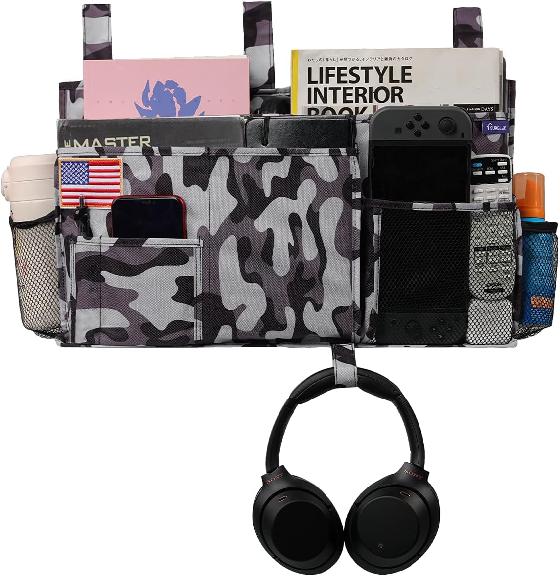 - Space Saving: The large bedside caddy is perfect for students to hang on the dorm bed to store books, magazines, laptop, notebooks, pens, cellphones, water bottles, and some snacks and drinks. You can put kinds of things in it, and make your bed clean and tidy! You can't need to leave your bed again!