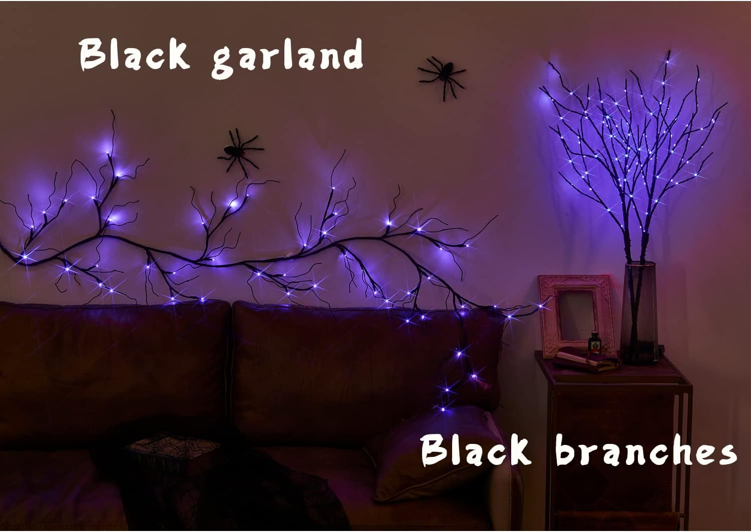 - ๐ Purple LED lights :32in tall branches are adorned with 100 purple LED, the magic soft glow creates an atmosphere of mystery and horror.(Lifetime 30,000 hours,bulbs are non-replaceable)