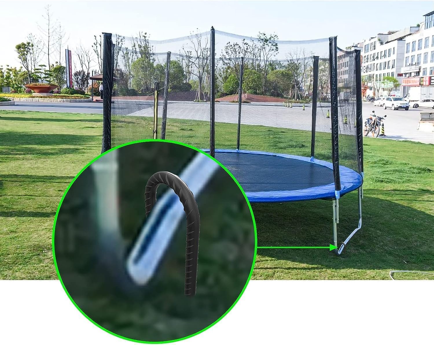 - MULTIPLE USES - AAGUT Trampoline ground stakes help stabilize your kids’ trampoline,soccer goals, camping tents, swing set, hammock, huge Christmas Outdoor Decoration, fences, tarps, garden cloth, hoses and more.