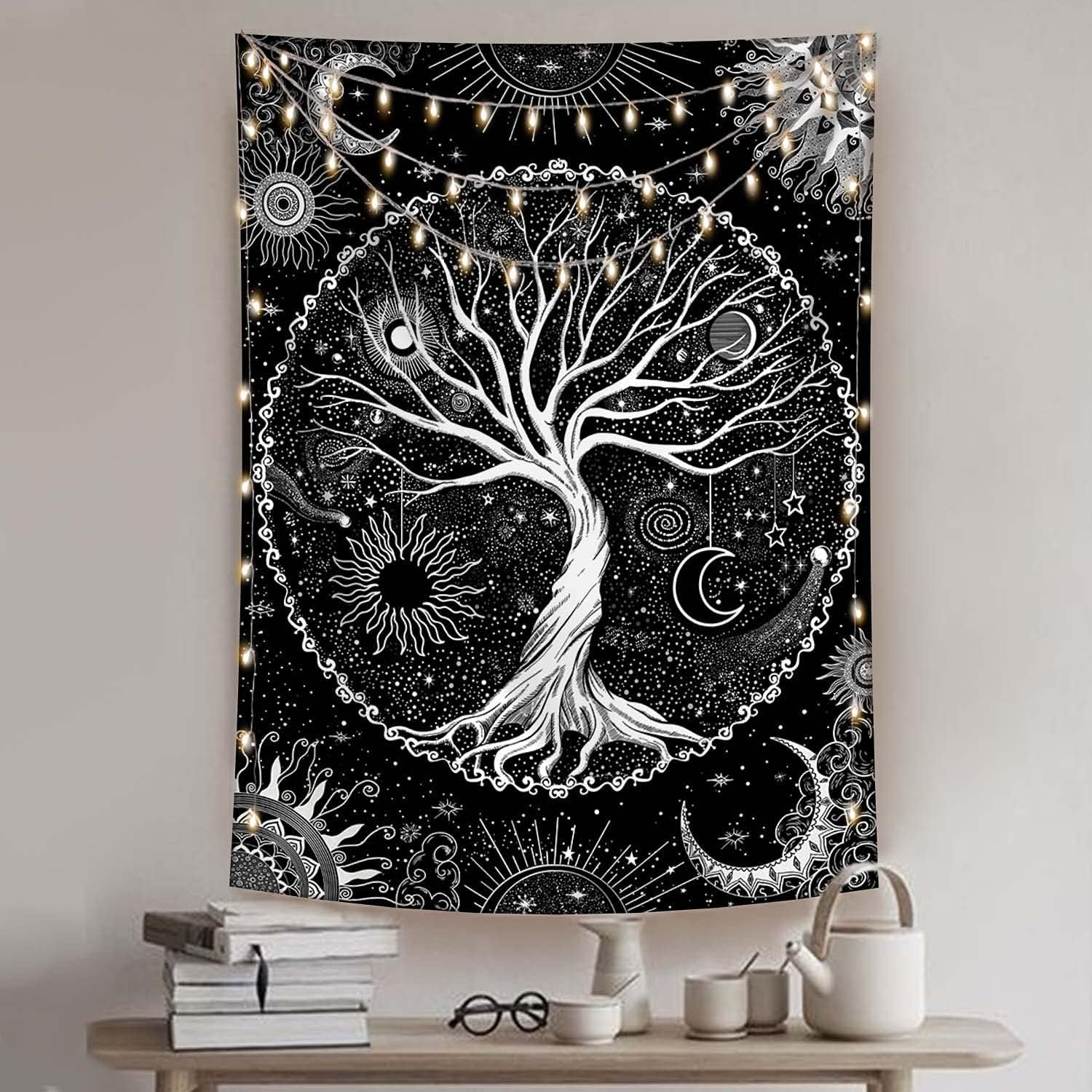 Lunerfex Tree of Life Tapestry Black and White Tapestry Mystical Sun and Moon Tapestries for Bedroom and Living Room Decor Black Tree 44×60 Inches